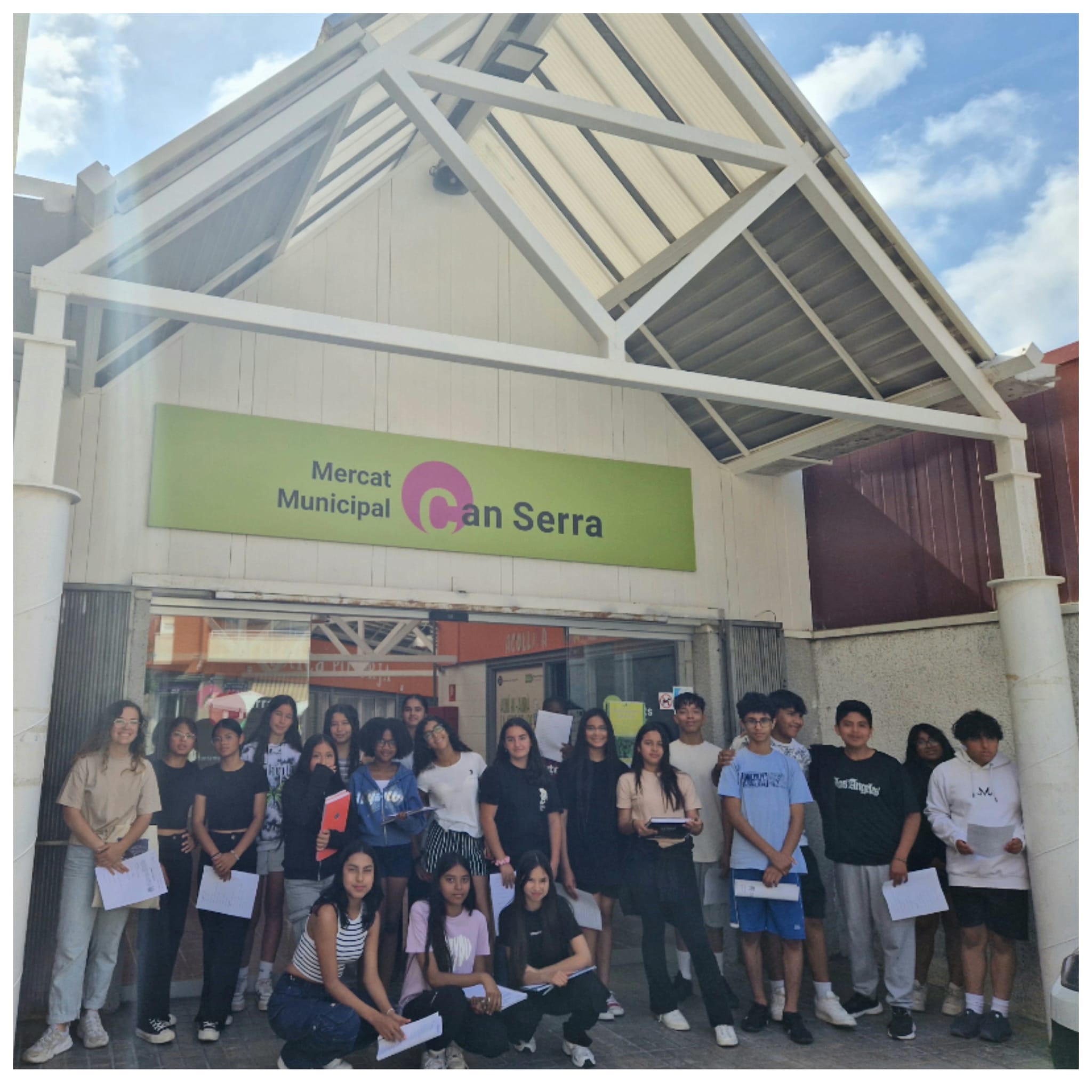 El grup d’alumnes del projecte d’Aprenentatge-Servei “Cicerone” ha acompanyat l’alumnat de l’Aula d’Acollida al mercat de Can Serra. Aquest mercat va obrir l’any 1985 amb 61 parades.