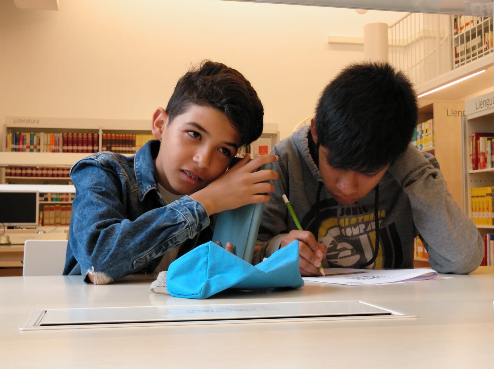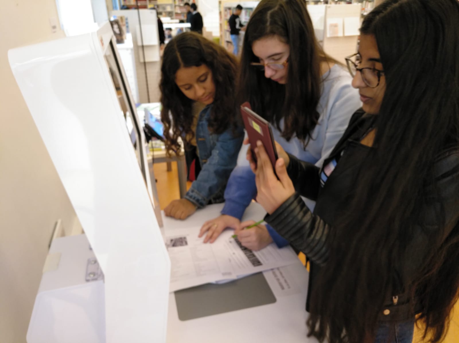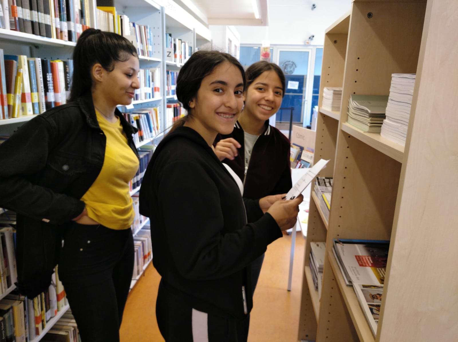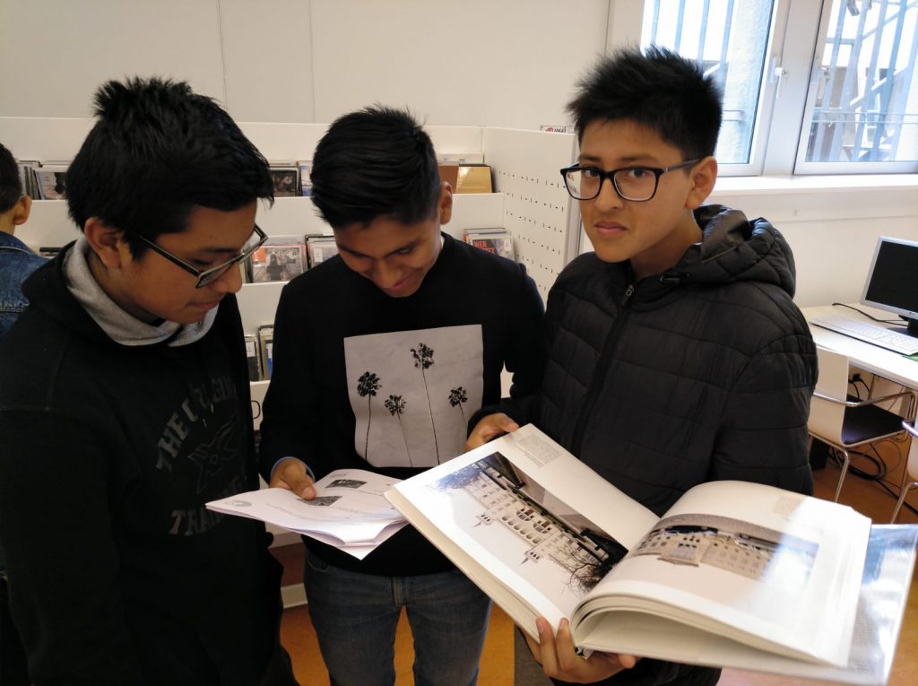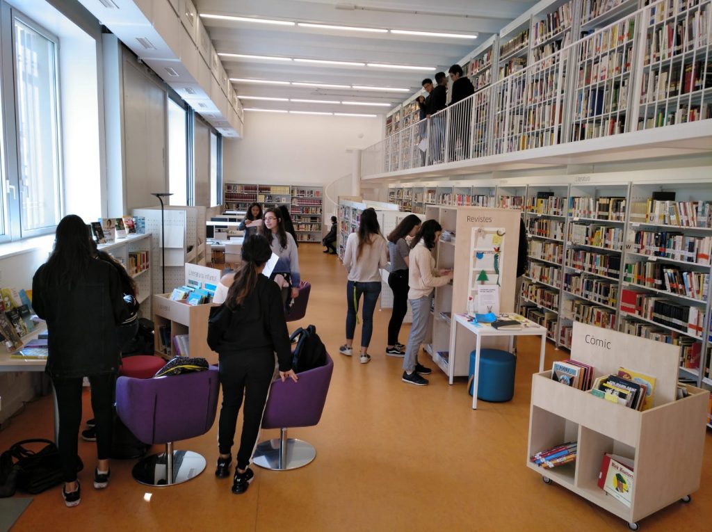 Dimarts passat l’alumnat de la matèria optativa d’Alemany de 3r ESO van visitar la biblioteca del Goethe Institut (GI) a fer un joc de pistes. Van gaudir, van aprendre com funciona la biblioteca, van conèixer personal molt amable del GI, es van endur uns records i els van convidar a un suc a la cafeteria. Gràcies, Goethe Institut!