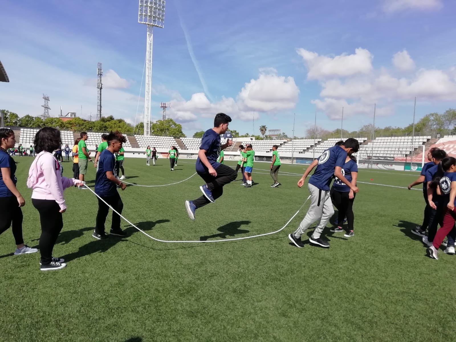 L’alumnat de 4t d’ESO ha anat a la cloenda dels Fitgames al camp municipal de futbol de Bellvitge. 12 instituts de la ciutat han participat en aquest projecte que pretén potenciar l’activitat física i la vida saludable entre els joves.