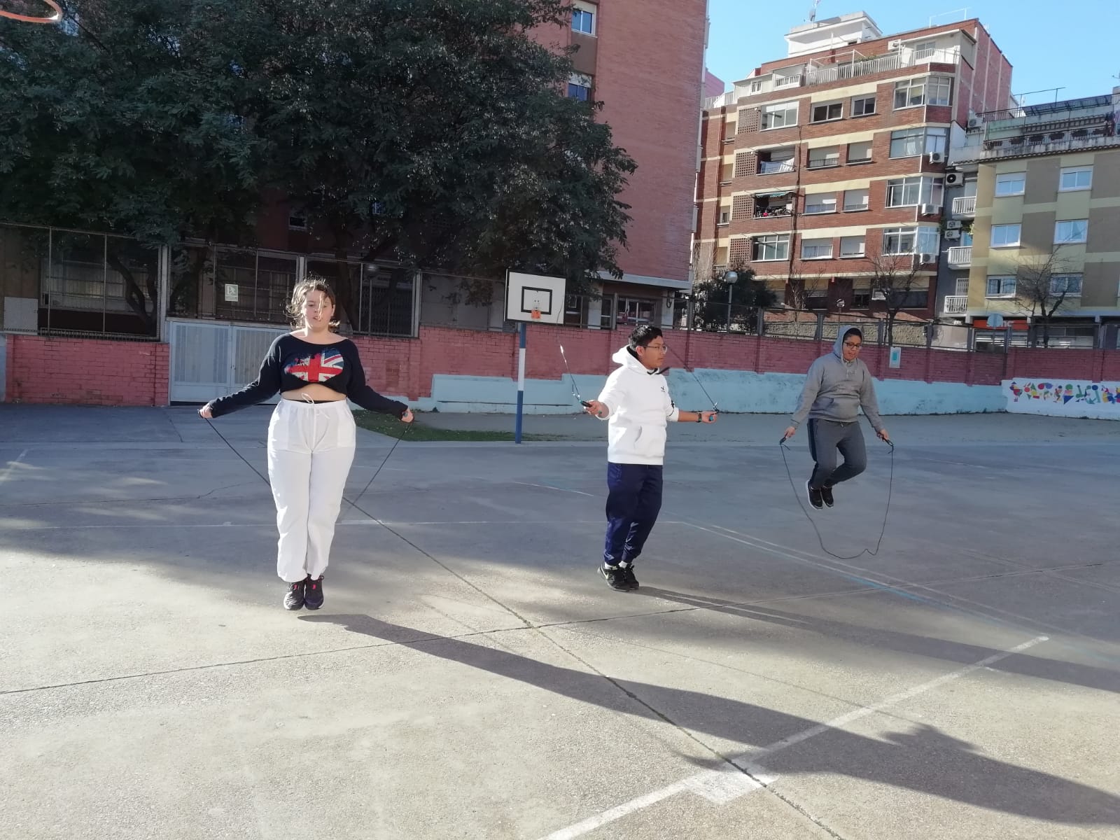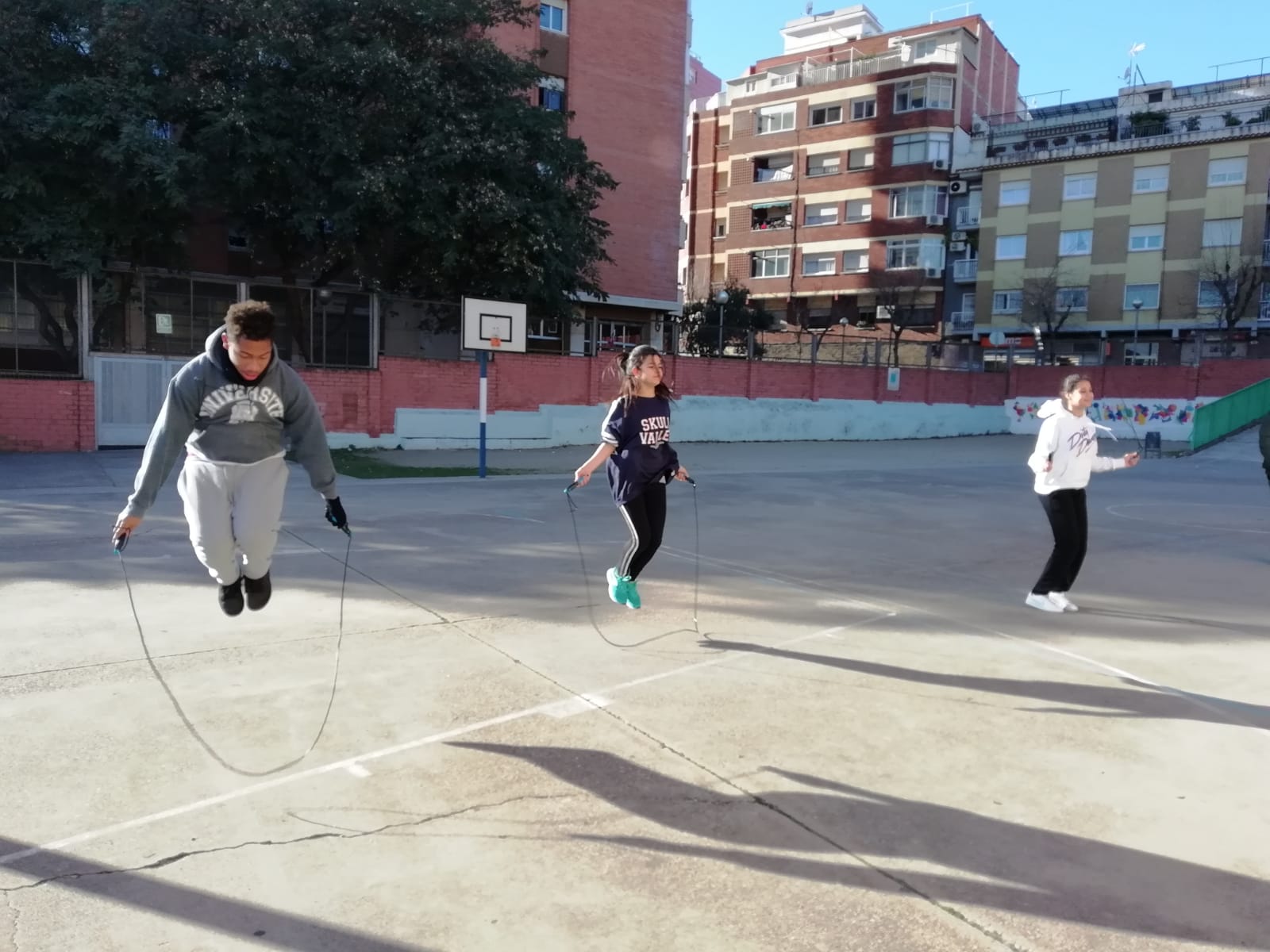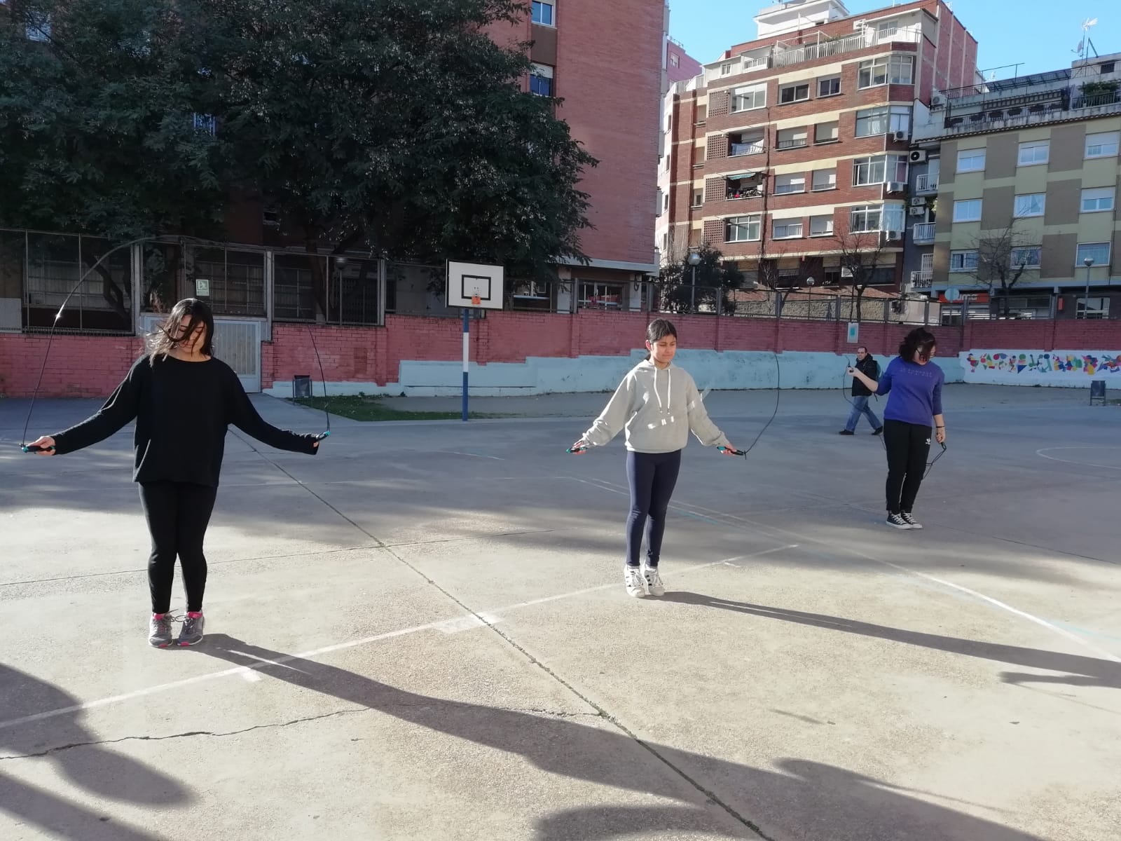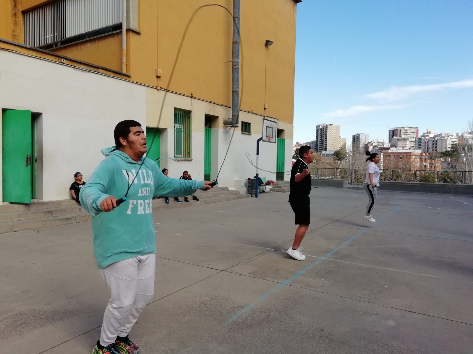 L’alumnat de quart d’ESO ha fet avui el repte 3 -màxim de salts individuals amb la corda en un minut- i el repte 4 -màxim de salts per classe durant 2 minuts- dins del projecte dels Fitgames.
