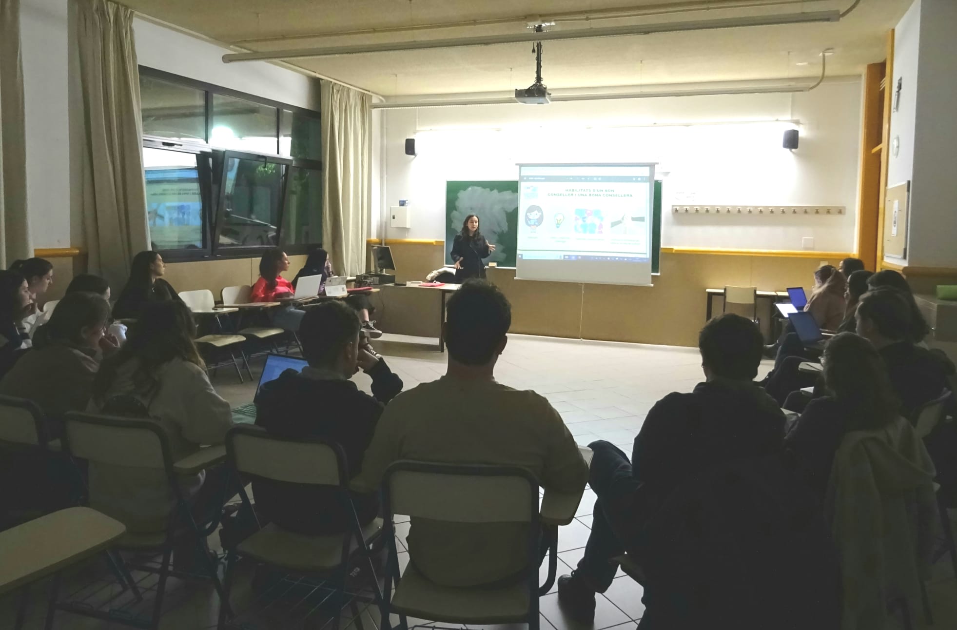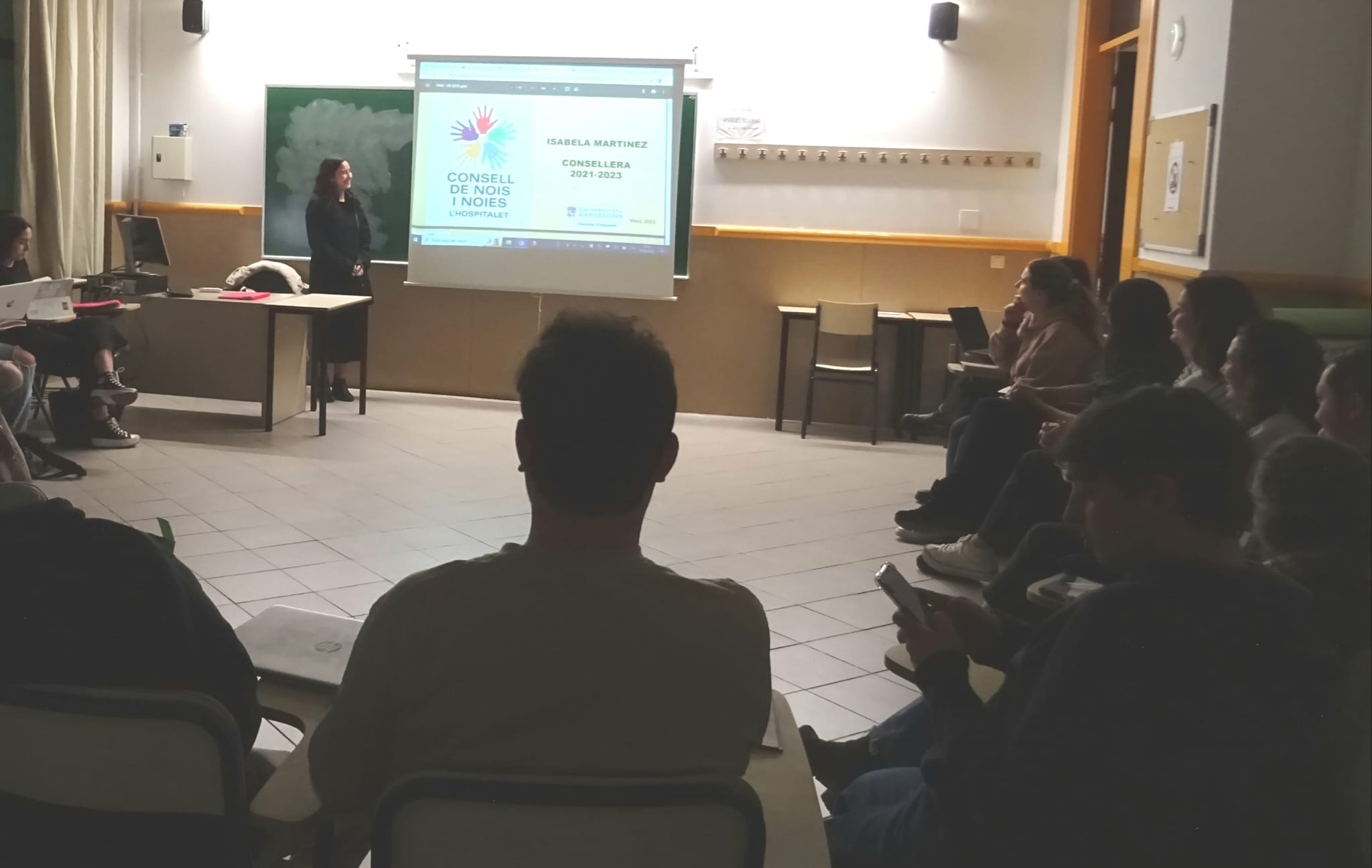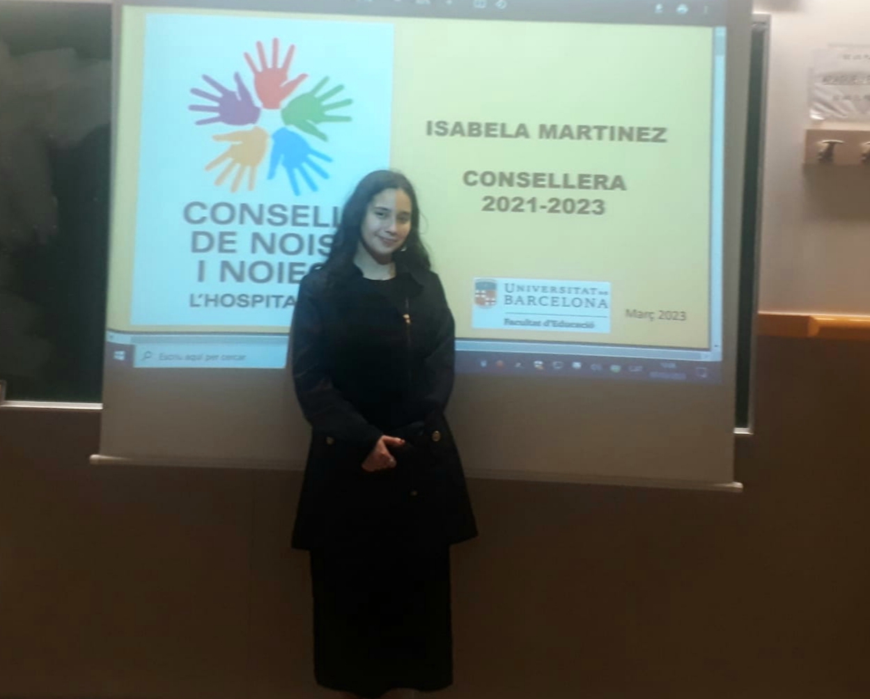 La setmana passada la Isabela, alumna de 4t i consellera del Consell de Nois i Noies de L’Hospitalet, va participar en una classe de Pedagogia de la Facultat d’Educació de la UB, on va explicar la seva experiència com a consellera.