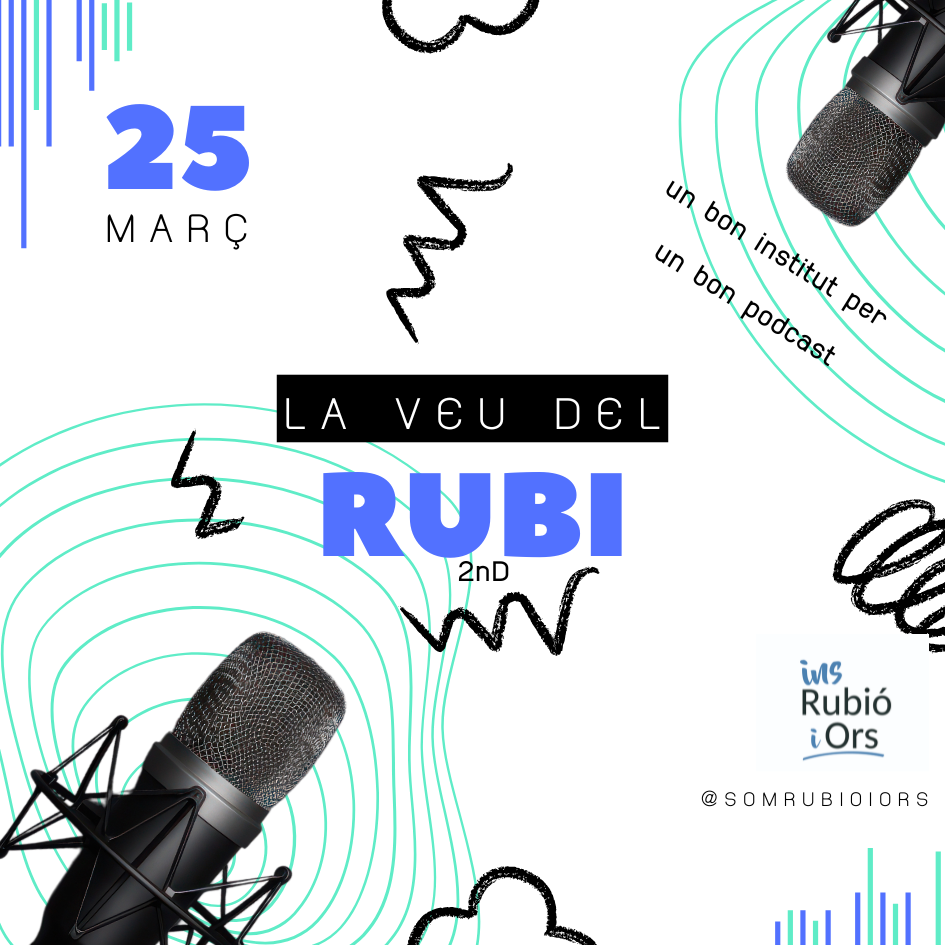 La veu del Rubi, que forma part dels projectes de 2n d’ESO, pretén donar veu als alumnes amb la creació del podcast de l’Institut, compartint les vivències i perspectives dels joves amb tota la comunitat. Al llarg del curs, l’alumnat de 2n elabora tres capítols, un per trimestre, on poden explorar temes que els interessen i donar veu a les seves opinions, inquietuds o curiositats.