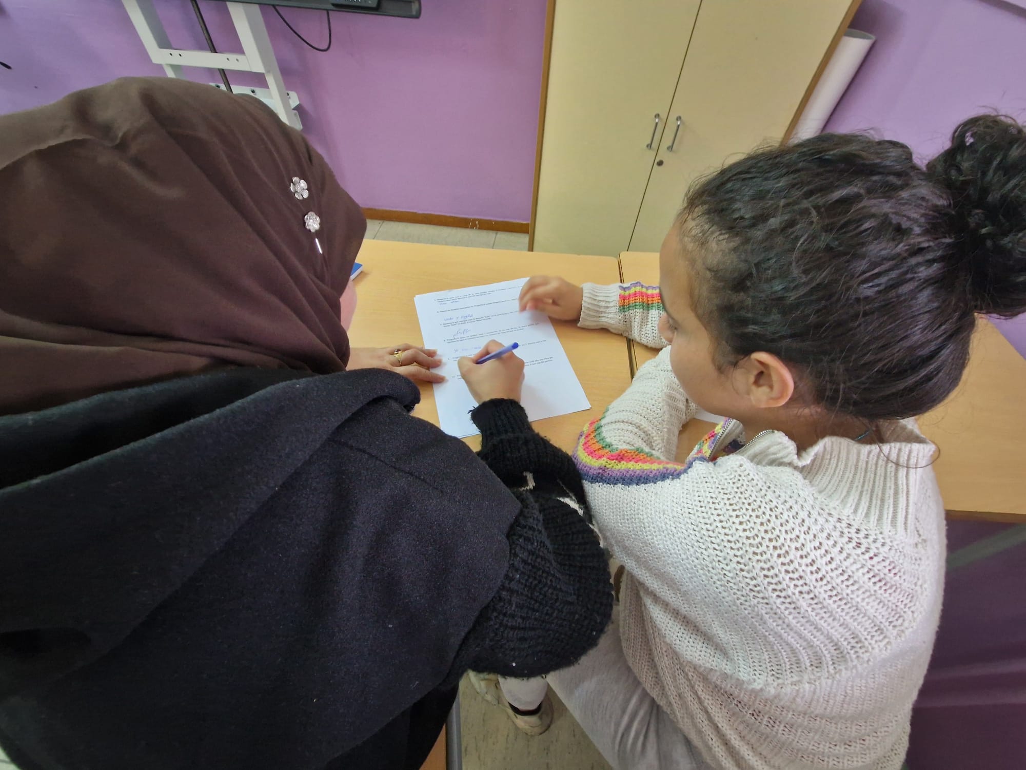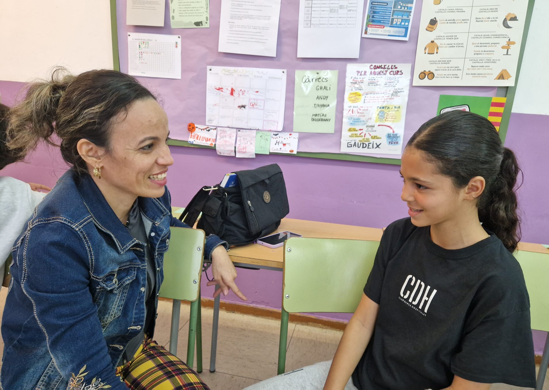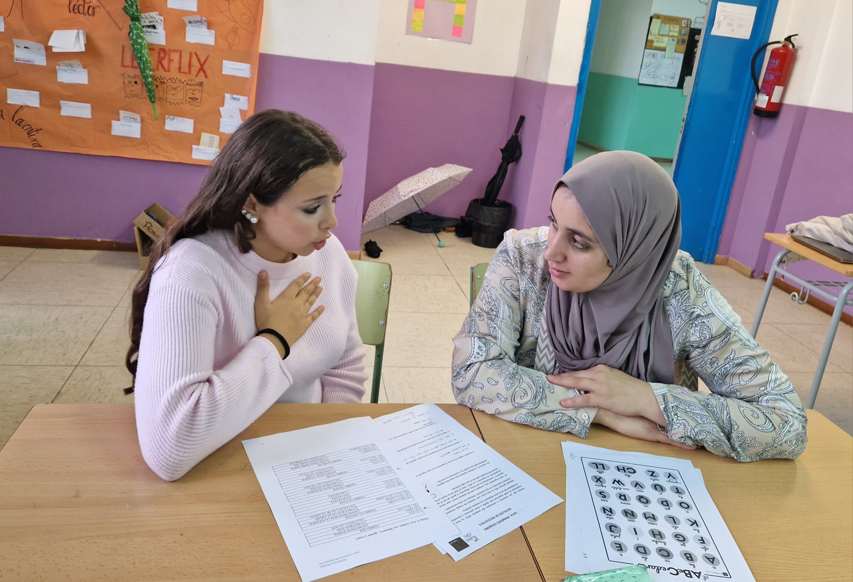 Les mares i familiars participants aprenen català i castellà amb el suport de l’equip voluntari d’alumnes que les ajuda.