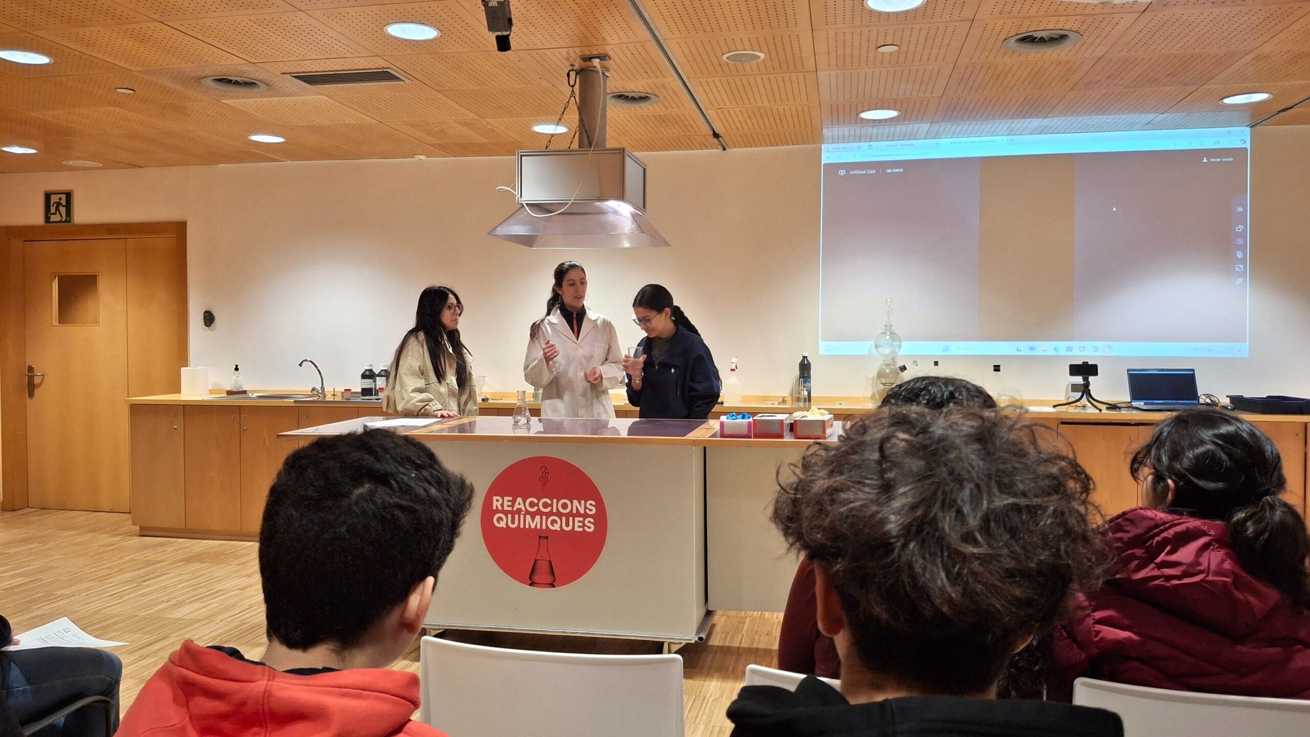 I el passat dijous 27 de febrer va ser la sortida al taller de reaccions químiques del 3r ESO A i B. A més a més de la realitació del taller, els alumnes vam poder veure la nova exposició sobre l’Univers que van inagurar la setmana passada al Cosmocaixa.