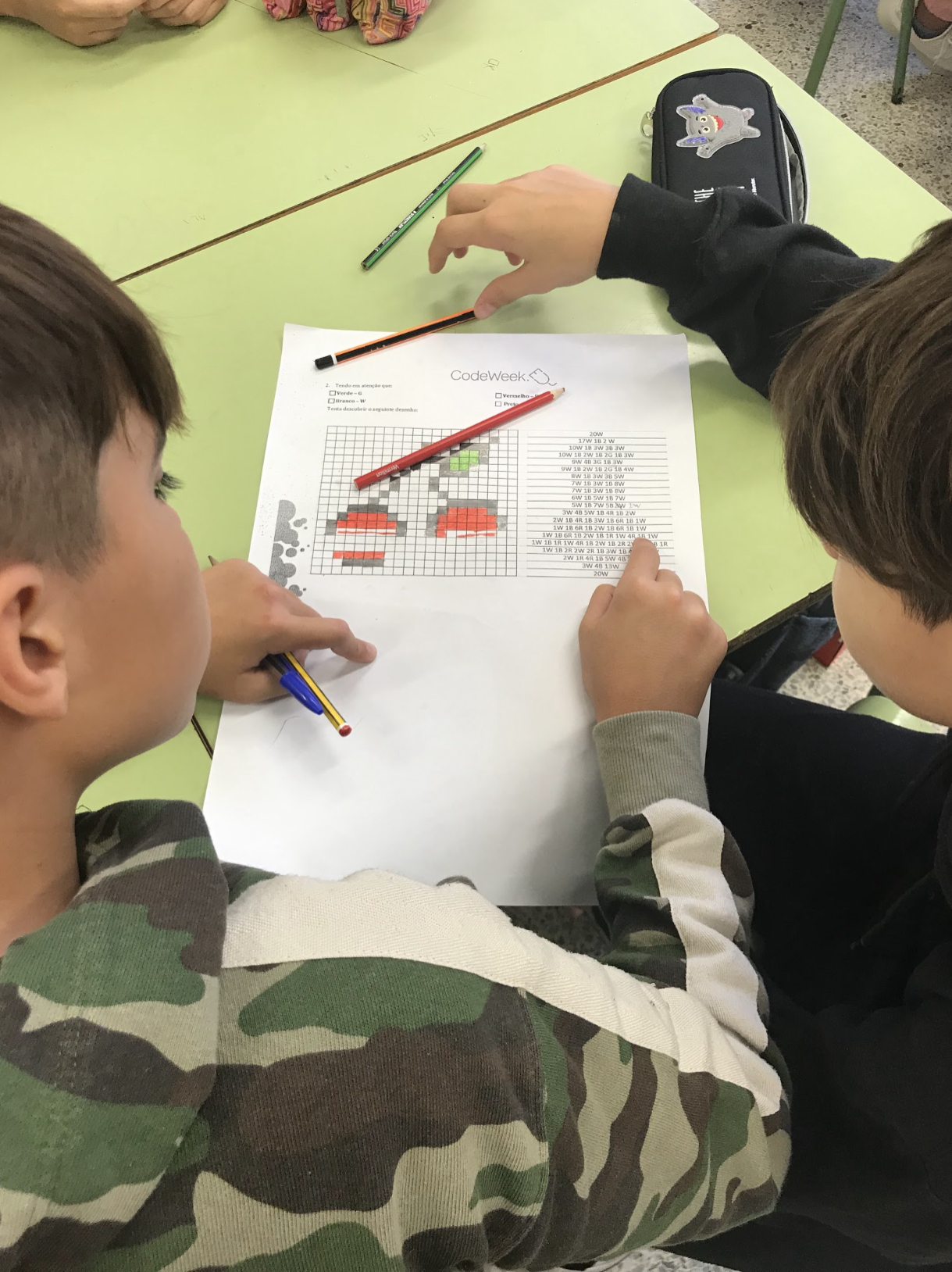 Una vegada més, els alumnes de primer d’ESO participen realitzant unes activitats desendollades. Aquest any participem conjuntament amb una escola Portuguesa practicant la codificació i descodificació de dibuixos realitzats amb píxels.