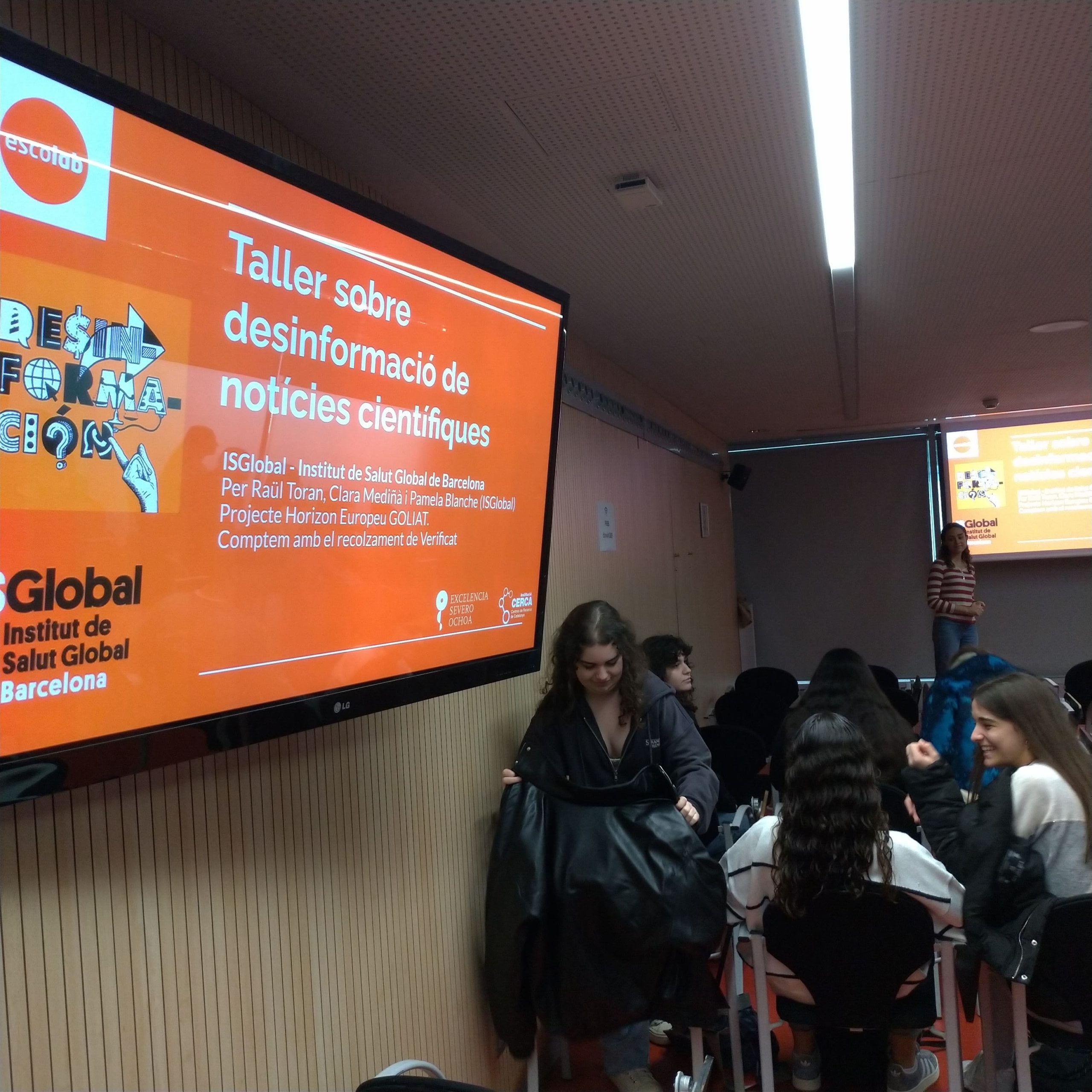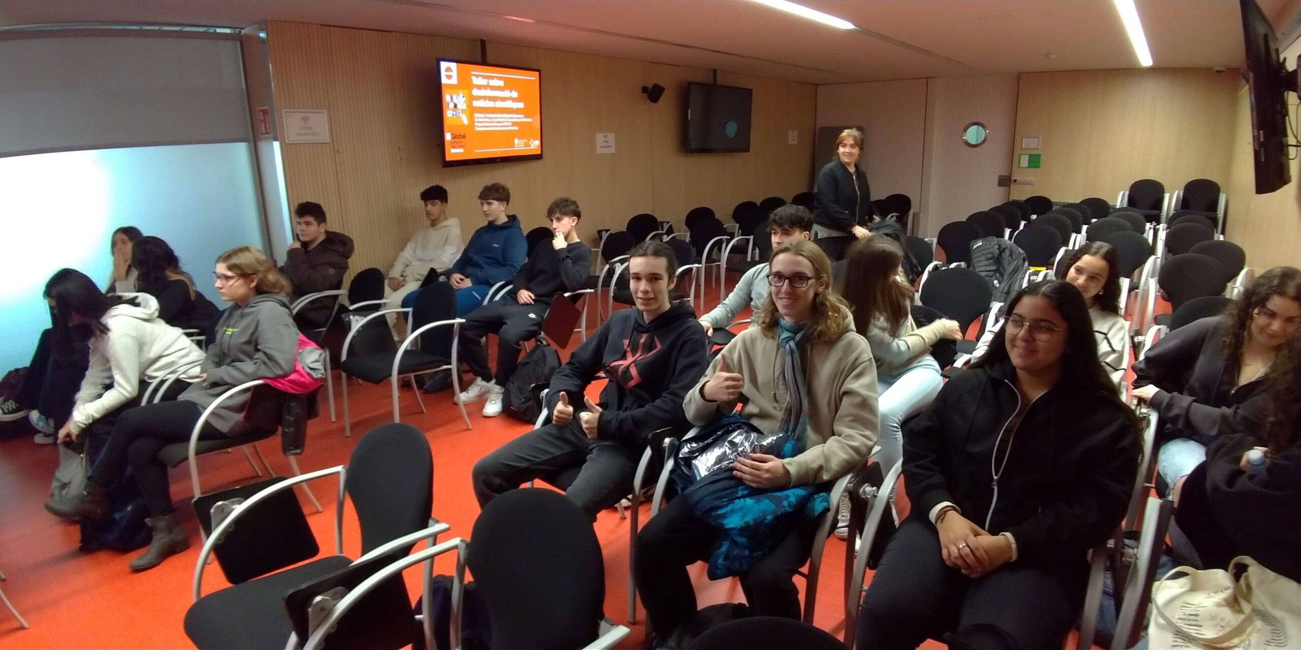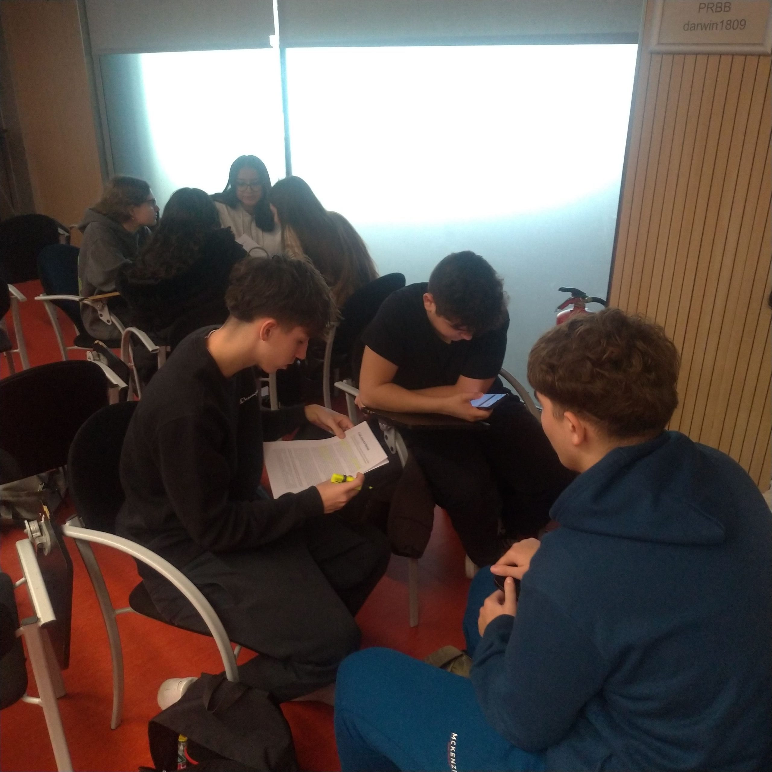 Amb l’alumnat de 1r de batxillerat de Biologia i Reptes Científics Actuals en Biologia i Geologia hem fet la primera sessió del taller Com detectar notícies falses (fakenews) i desinformació científica als mitjans de comunicació?, amb la gent de l’Institut de Salut Global de Barcelona a les instal·lacions del Parc de Recerca Biomèdica de Barcelona