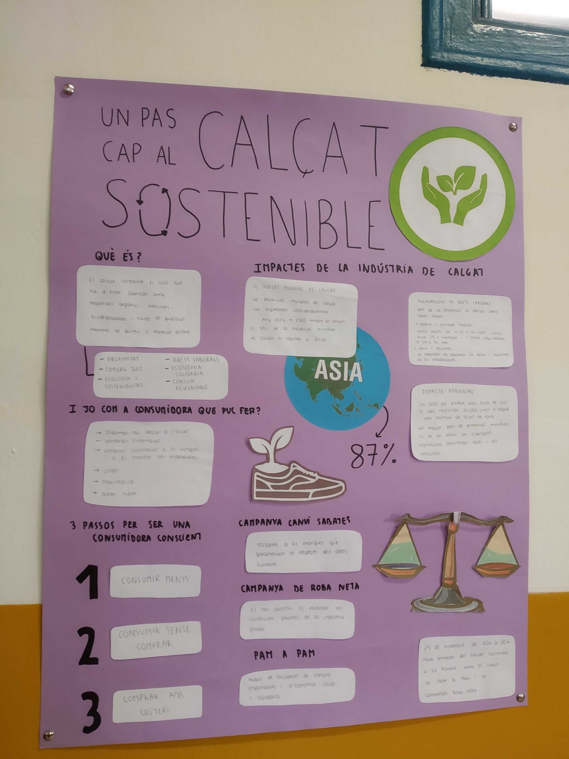 L’alumnat de 1r de Batxillerat de la matèria d’Economia ha realitzat un projecte d’economia circular de diferents temàtiques: ruta de comerços d’economia circular d’Hospitalet, mapa d’iniciatives d’economia social i solidària del Pam a Pam a Catalunya, mapa de conflictes mediambientals (ejatlas.org), promoció del calçat sostenible, reflexió sobre la ruta que fa un tomàquet des de la seva producció al Marroc fins al lloc de consum i conseqüències actuals del consum excessiu de matèries primeres.