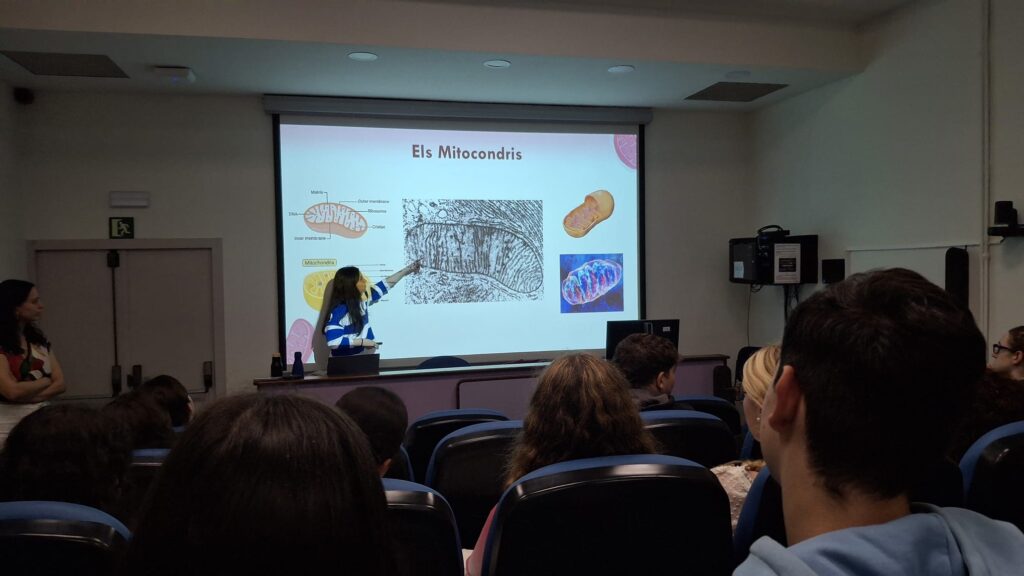 Amb 1r i 2n de Biologia de batxillerat assistim a la xerrada “Els enigmes d’una molècula circular, l’ADN mitocondrial“ a càrrec de la doctora Margalida Puigròs i Ia, quasi doctora, Èlia Ivans.