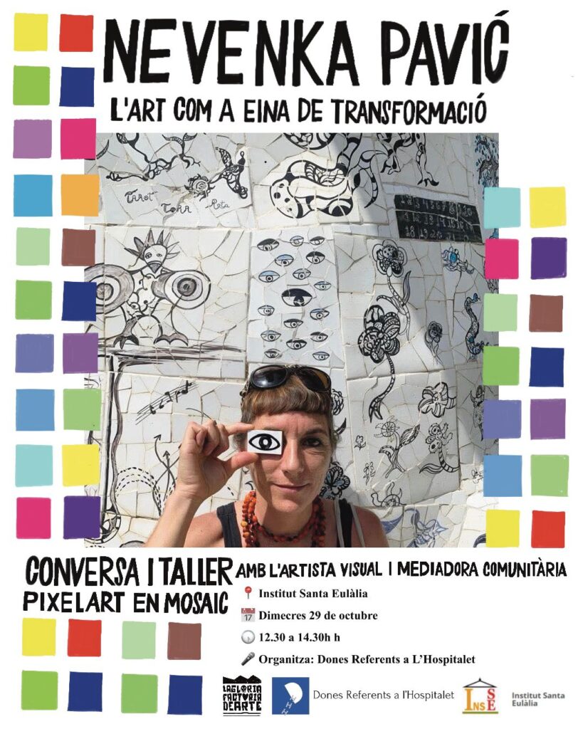 El passat 29 d’octubre, l’alumnat de l’optativa Expressió Artística de 4t d’ESO va tenir l’oportunitat de participar en un taller amb l’artista Nevenka Pavic, fundadora de La Glòria Factoria d’Art i reconeguda creadora vinculada a la ciutat de L’Hospitalet.