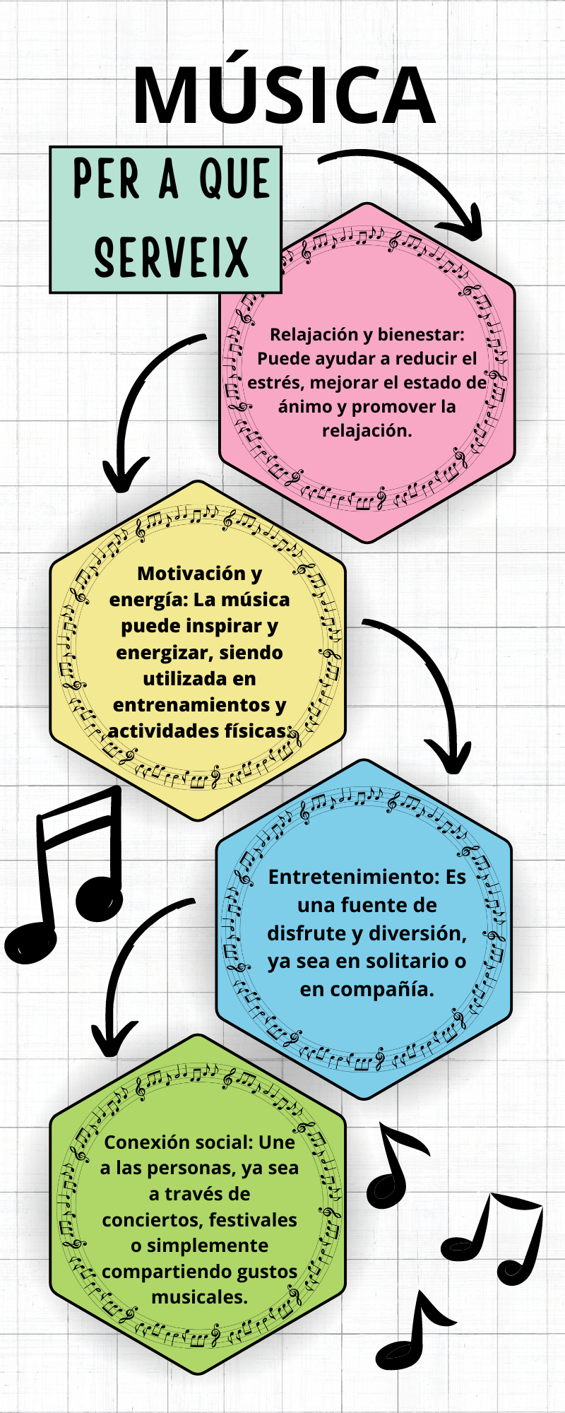 L’alumnat de 3r d’ESO de l’aula de Música ha creat una infografia sobre les utilitats de la música. Mireu, mireu…