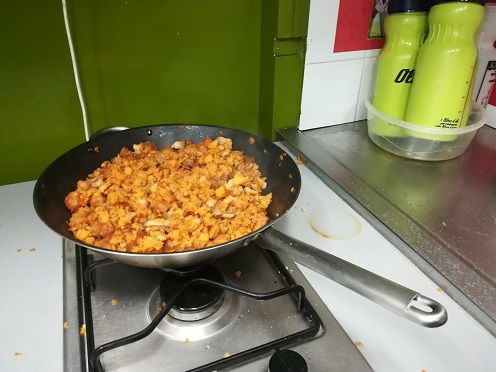 “MIGAS ARAGONESAS” INGREDIENTS 1 CEBA 2 BARRES DE PA DUR AIGUA 1 ALL XISTORRA CANSALADA 2 TOMÀQUETS SAL I OLI PREPARACIÓ DE LA RECEPTA 1/ TALLAR AMB UN GANIVET EL PA A TROSSOS PETITS. ESQUITZAR UNA MICA D´AIGUA AMB ELS DITS. 2/ TALLAR LA CANSALADA A TROSSETS I FREGIR A UNA PAELLA AMB UNA MICA D´OLI D´OLIVA I RETIRAR. 3/ TALLAR LA CEBA FINA I FREGIR-LA AMB L´ALL PICAT. 4/ TALLAR LA XISTORRA A TROSSOS PETITS I AFEGIR A LA PAELLA AMB LA CEBA I L´ALL. 5/ AFEGIR EL TOMÀQUET RATLLAT AMB UNA MICA DE SAL. 6/ AFEGIR EL PA I REMOURE SENSE PARAR DURANT 5 O 10 MINUTS FINS QUE AGAFIN COLOR I ESTIGUIN FREGIDES. AFEGIR LA CANSALADA. |