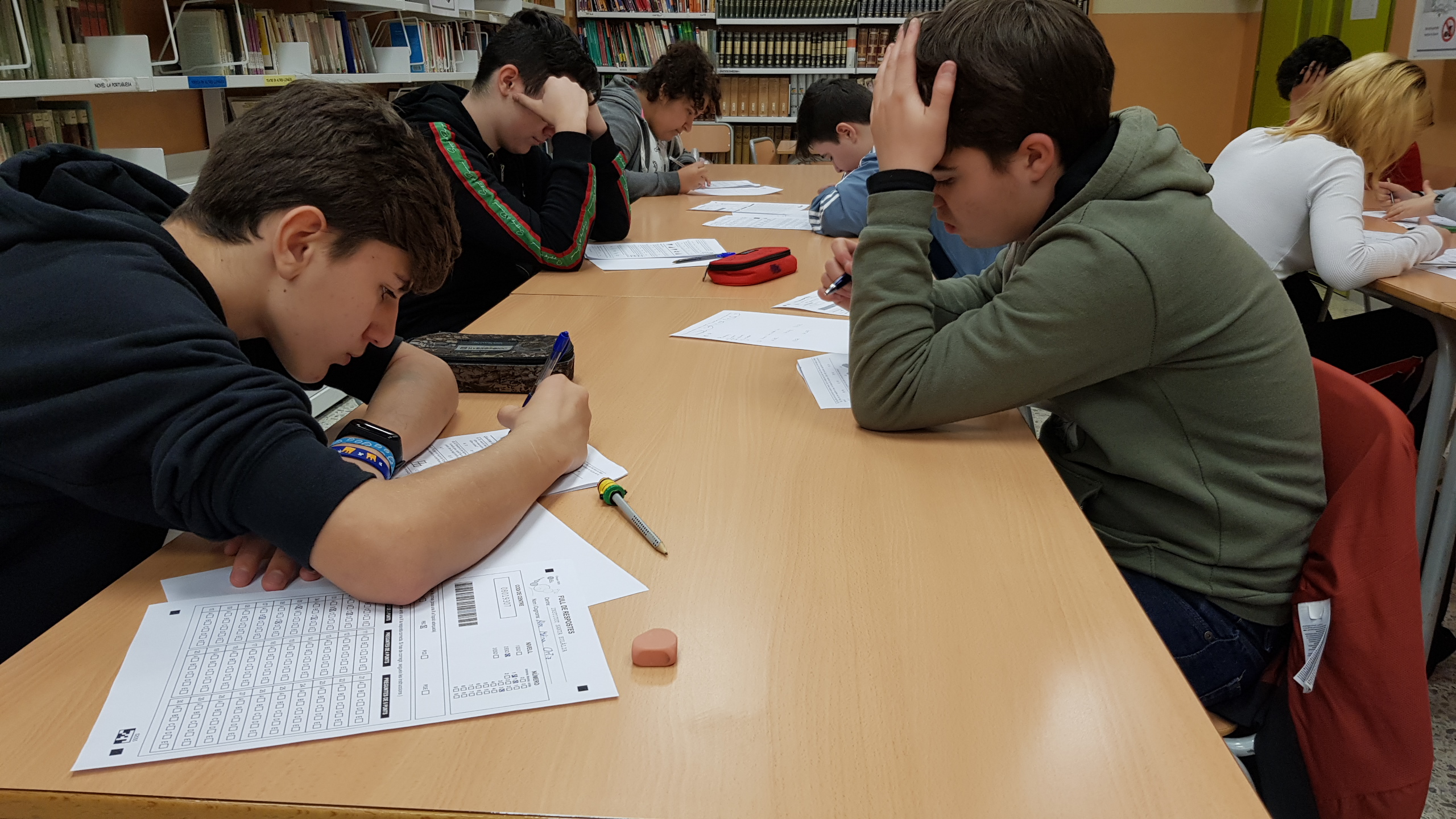Aquest dijous dia 21 de març, i com ja portem anys fent, una part dels nostres alumnes ha realitzat les proves cangur. Els alumnes voluntaris de primer, segon i tercer de l’Eso les han fet, en dos torns, al nostre propi centre, mentre que alumnes de quart i batxillerat s’han desplaçat fins a la universitat on s’han trobat amb alumnes d’altres centres de tota Barcelona i rodalies.