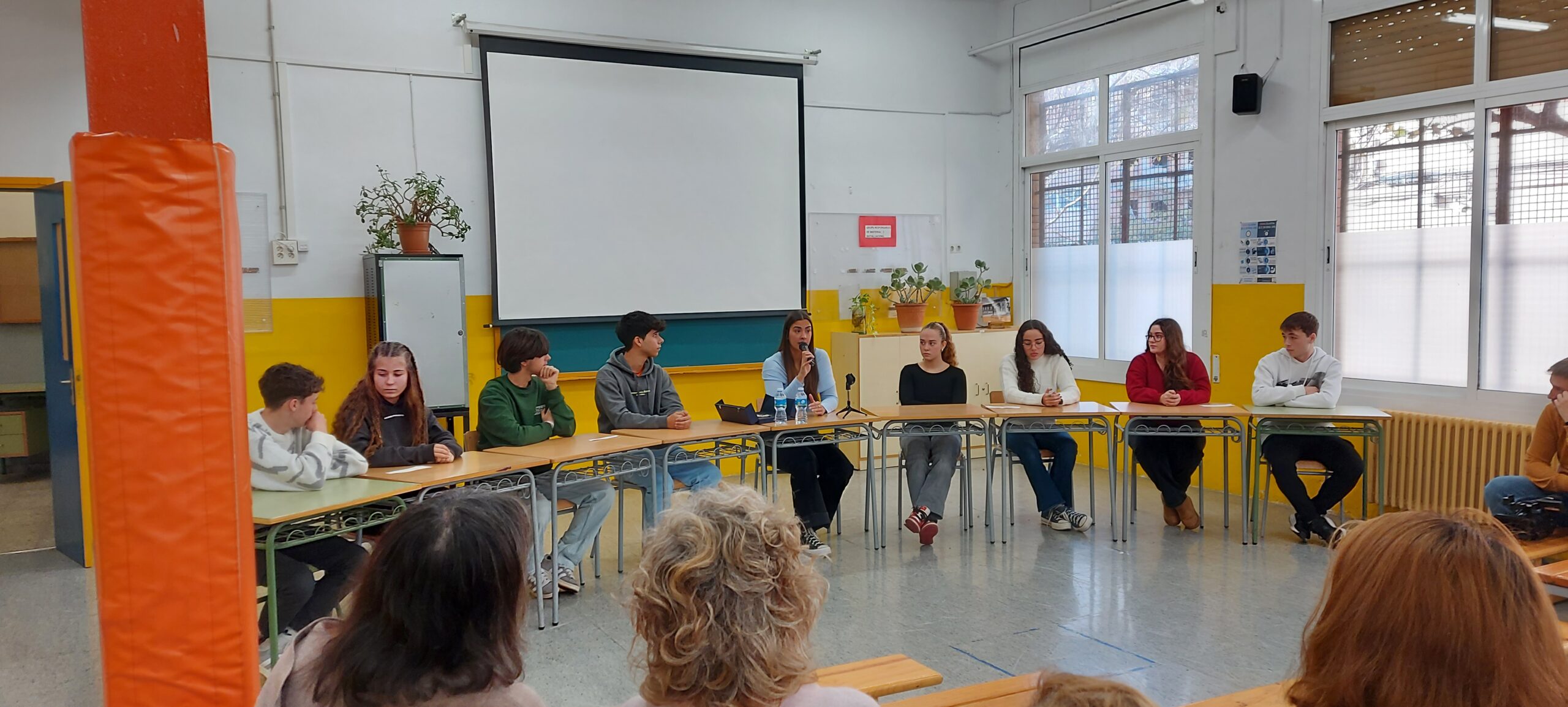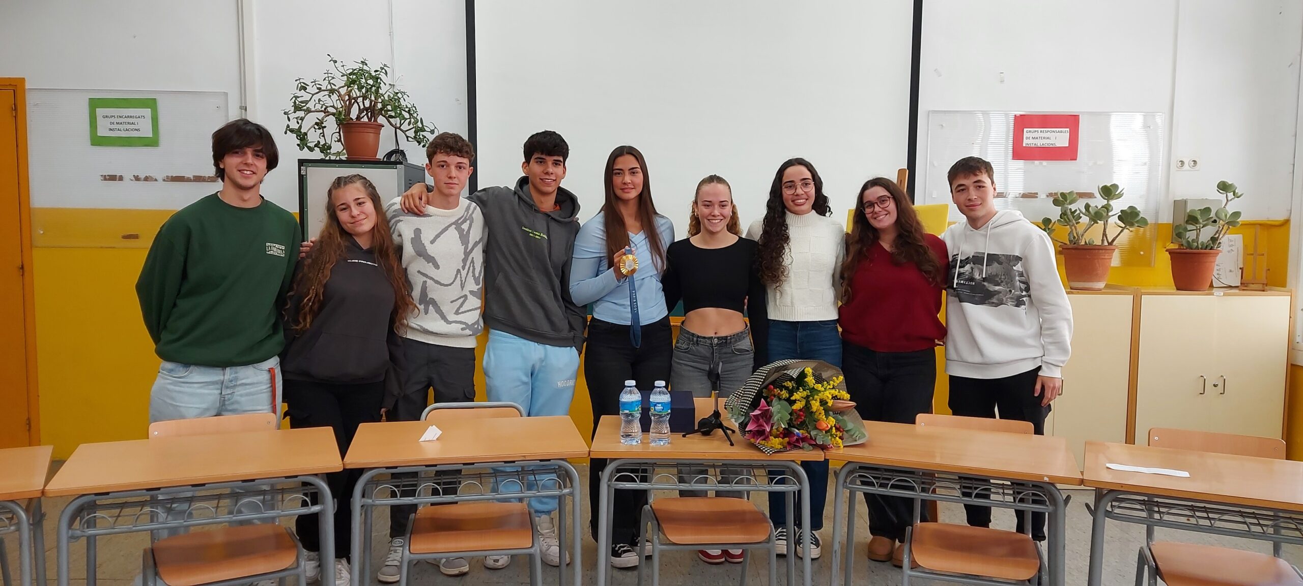 Alumnes de 1r i 2n de batxillerat han compartit taula amb la Paula i li han fet preguntes relacionades amb la seva trajectòria professional, sobre la importància de fer esport, inquietuds personals,…