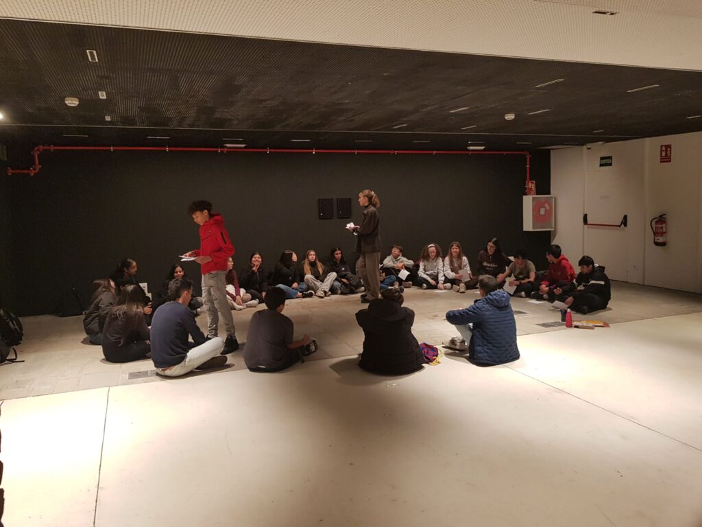 Al llarg del recorregut, l’alumnat va experimentar dinàmiques inspirades en els poemes de Brossa: fer llistes d’objectes, assenyalar espais insòlits, intervenir sobre un full en blanc o exercitar mans, ulls i peus per mirar el món des d’una altra perspectiva. Un viatge sensorial i lúdic que convida a observar amb crítica, però també amb sorpresa i joc.