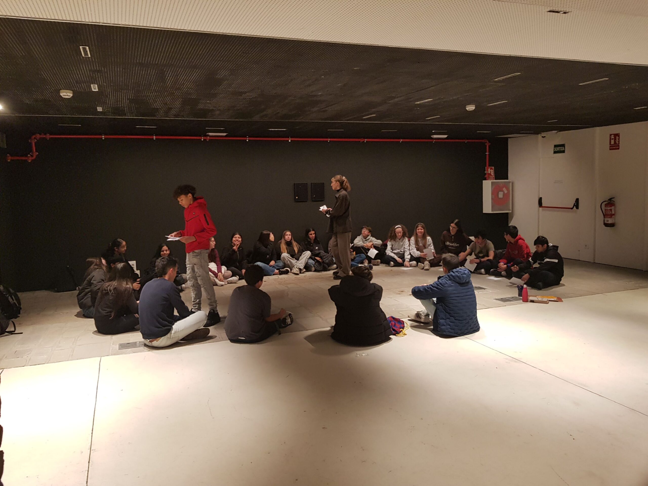 L’alumnat de 2n d’ESO A i B ha participat recentment en una experiència artística singular a la Fundació Joan Brossa. En arribar, la visita ens va donar la benvinguda amb una invitació ben especial: abans d’entrar a les sales, havíem d’obrir plegats un espai-temps sideral. Un lloc imaginari fet de selva frondosa, rastres i magmes, llenguatges insinuats i intents insensats de sortir dels marges.