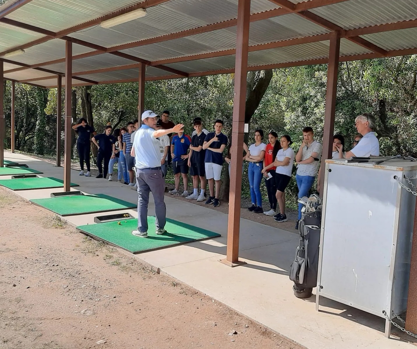 L’alumnat de 1r de batxillerat visita el Camp de Golf de Matadepera Feu un comentari / Per admin / 22/04/2022 / Activitats Batxillerat Portada El grup de 1r de Batxillerat va gaudir el dia 17 de maig d’una sortida al Camp de Golf de Matadepera, on ha pogut iniciar-se en la pràctica d’aquest esport, aprofitant el bon temps i com a preludi de les properes vacances d’estiu.