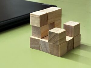 Posteriorment, els equips han debatut sobre els patrons geomètrics de les figures prèviament generades per ells a l’efecte de decidir la manera més eficient d’efectuar un recompte del nombre total de cubs que havia sigut inclòs en cada figura tridimensional generada.