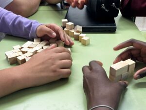 Organitzats en petits grups cooperatius, cada grup ha disposat de 20 minuts per desenvolupar al màxim possible la seva creativitat i generar patrons originals per a crear figures geomètriques de tres dimensions a base de cubs de fusta, en què cada cub de fusta representava 1 centímetre cúbic.