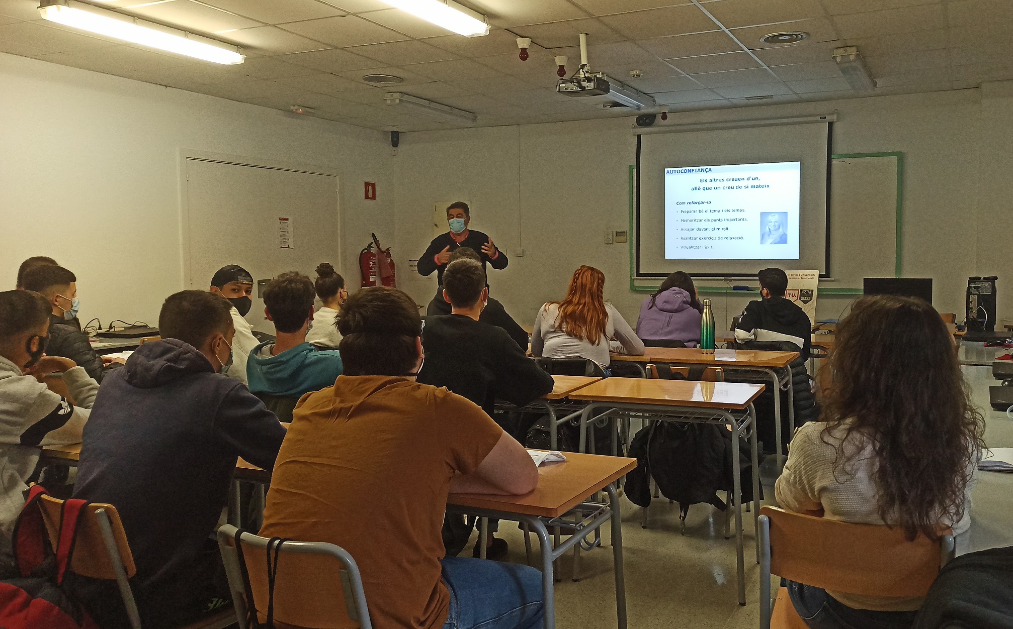 L’alumnat de 2n curs del CFGM de Vídeo, disjòquei i so va participar el dia 15 de novembre de les activitats de la Mostra del Coneixement 2021-22 amb l’assistència a la sessió “Comunicació oral per a introvertits i tímids”, a càrrec del ponent Eduard Villanueva. Durant la xerrada, aquest any recuperades les activitats presencials, els i les estudiants han aprés com perdre la por a parlar en públic, les diverses fórmules per atreure l’atenció dels oients i també han rebut consells pràctics per organitzar la seva presentació audiovisual.