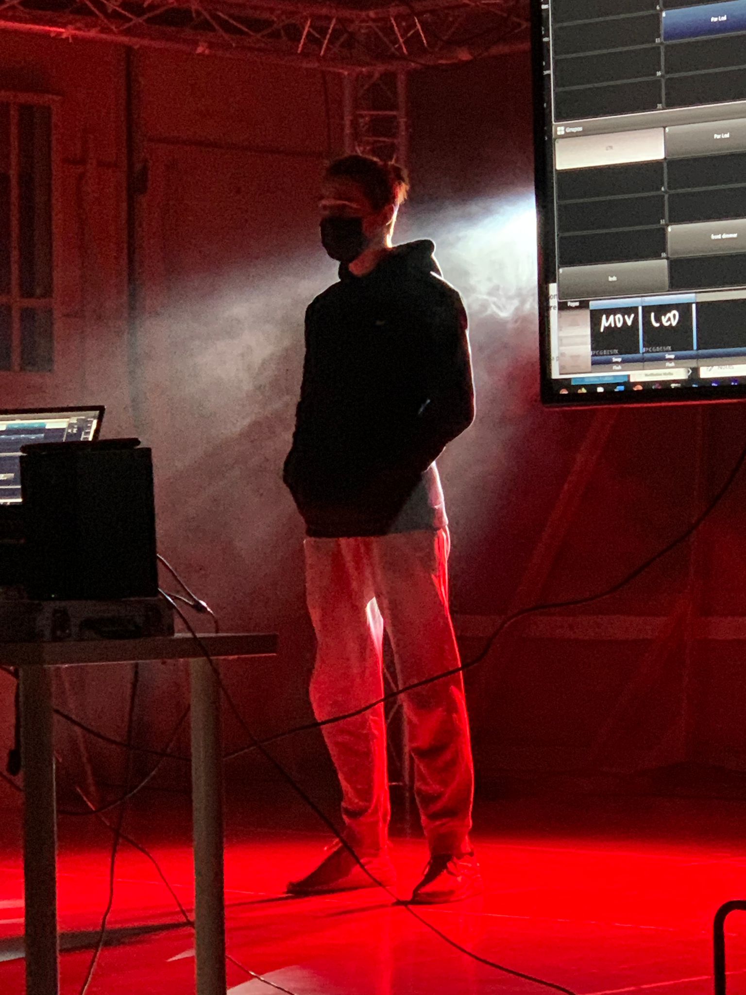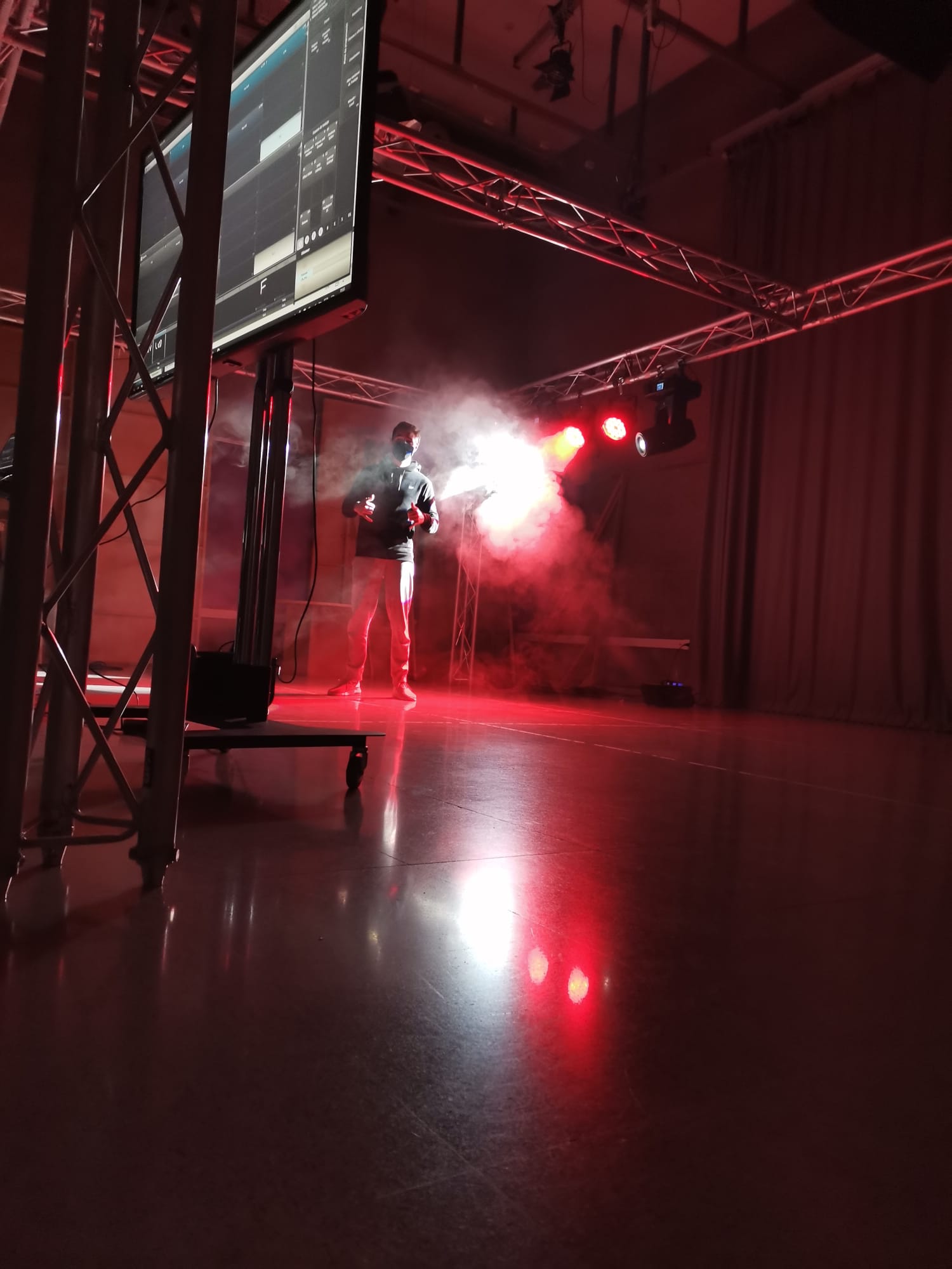 El grup de 2n curs del CFGS Realització de Projectes d’audiovisuals i espectacles ha realitzat unes pràctiques d’il.luminació amb material d’última generació al plató de l’edifici d’Imatge i so que ha volgut compartir amb la resta de la comunitat educativa, que així també pot gaudir dels extraordinaris resultats visuals aconseguits durant la classe del dijous dia 13 de gener.