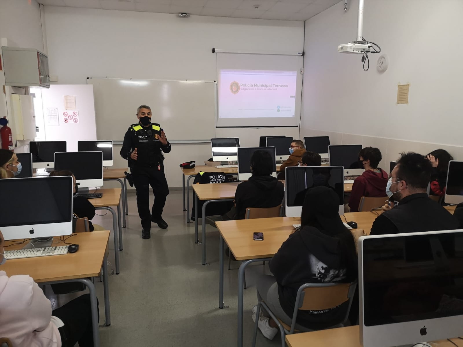 La passada setmana, el grup de 1r del CFGM Vídeo, discjòquei i so del matí va rebre una xerrada sobre ciberassetjament per part de la Policia local de Terrassa. La prevenció i el tractament del ciberbullying ha esdevingut un tema molt important entre els més joves, donat l’ús constant que fan de les xarxes socials i les noves tecnologies digitals. Agents de la policia local ofereixen aquestes formacions als centres que ho demanen, on donen pautes i eines per detectar i denunciar comportaments que poden esdevenir perillosos per l’alumnat.