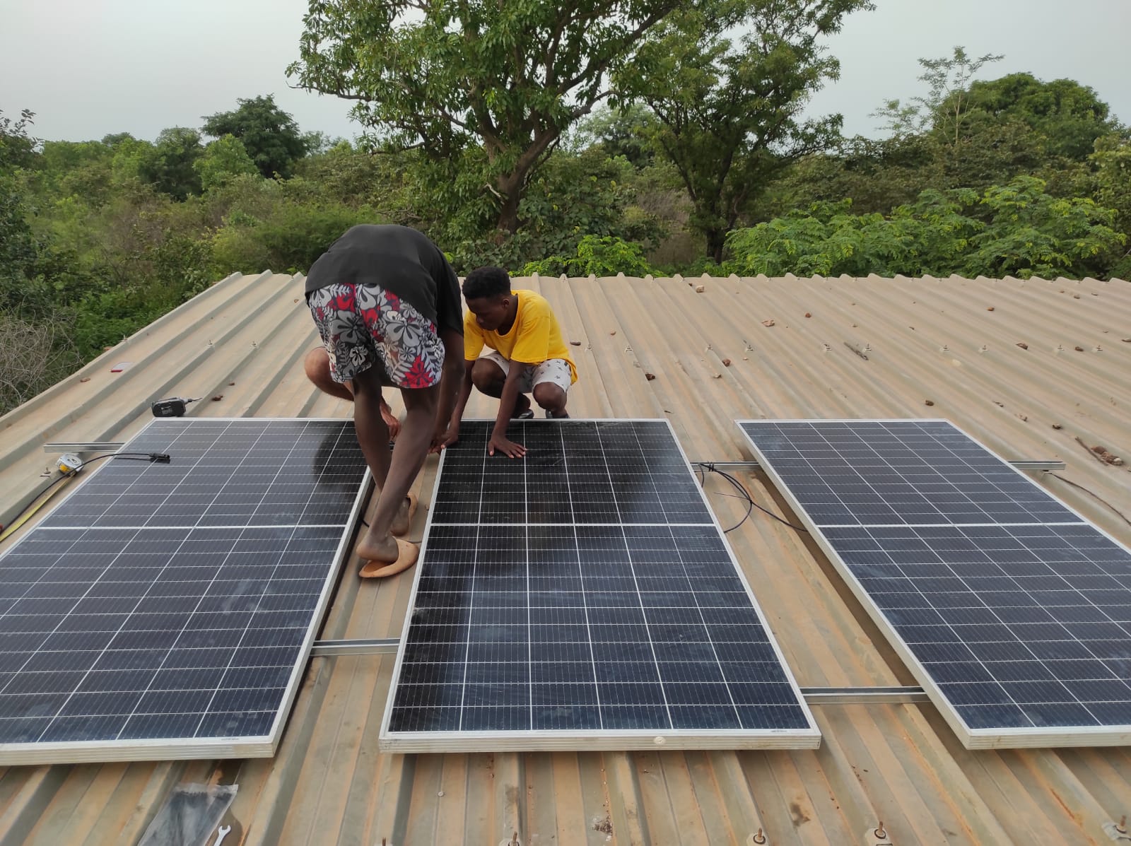 Des d’el Senegal, ens han fet arribar fotos i vídeos del muntatge, i com agraïment, ens envien fotos de la inauguració de l’escola, on surt el nom de la UPC, però ens agraeixen a l’INS Santa Eulàlia la col·laboració, posant el nom dels alumnes nostres a la pissarra.