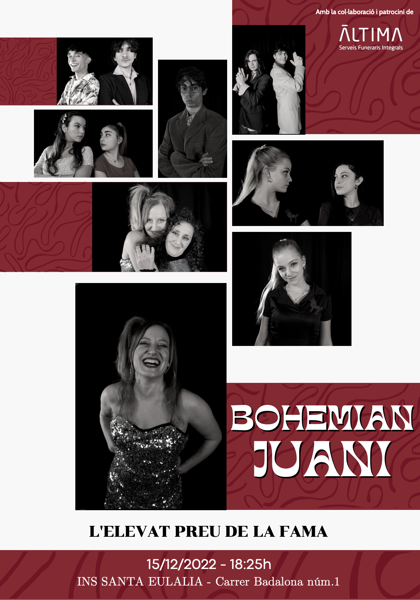 BOHEMIAN JUANI s’emmarca dins del Mòdul de projecte d’aquest cicle formatiu i ha comptat amb la generosa col·laboració del InstitutBanús de Cerdanyola del Vallès, l’alumnat i professorat del qual ha proporcionat el repartiment principal de l’obra, encapçalat per Arwen Jade i Montse Baiget. També ha comptat amb el patrocini d’Altima Serveis Funeraris Integrals, que ha proporcionat el taüt que tanca l’emotiu últim acte de l’espectacle.