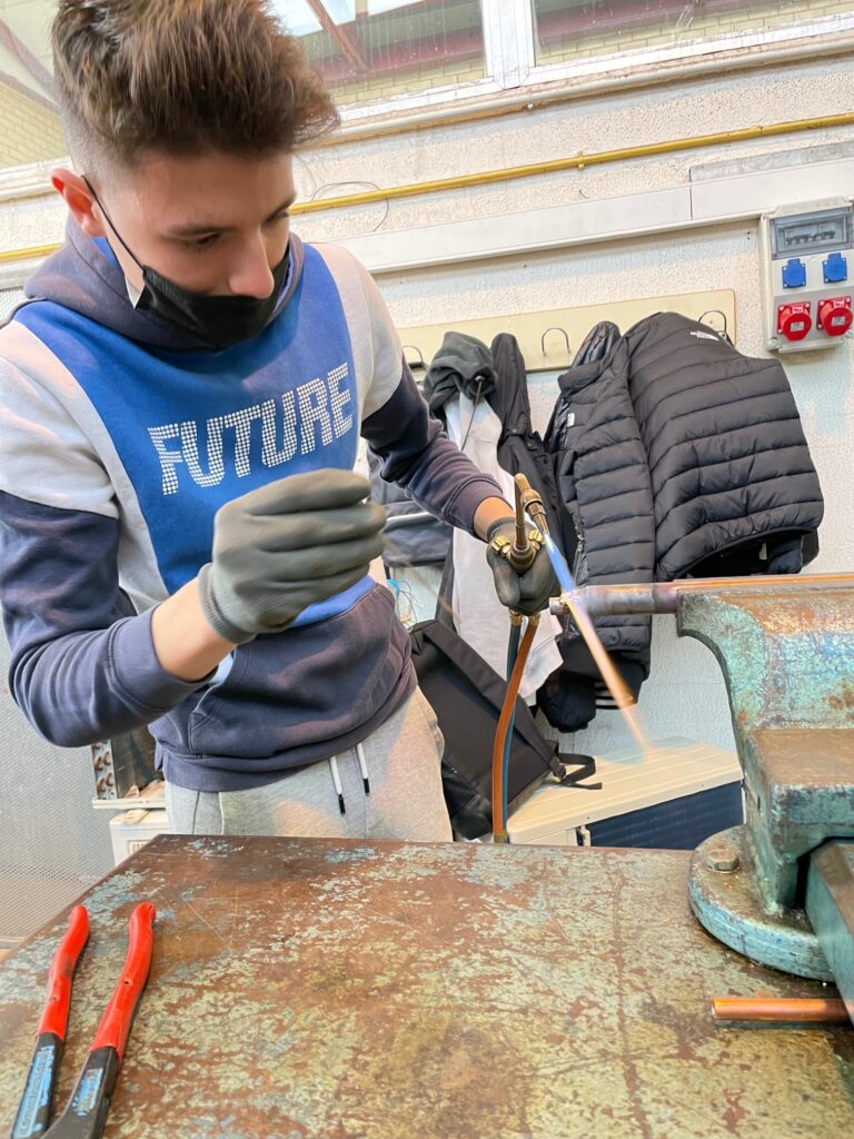 El professor Jordi Vives vol compartir algunes imatges que il.lustren les tasques que apren a desenvolupar el seu alumnat als tallers de soldadura dels Cicles Formatius de Grau Mitjà d’Instal.lacions anomenats de forma familiar com “Fred” i “Calor”. Com ell mateix afirma: “no es res singular perquè es el que acostumem a fer, però potser passa desapercebut per a molta gent” Les fotografies mostren l’experiència professional que adquireixen els seus alumnes durant les hores de taller d’aquests estudis, que a més tenen un alt grau d’inserció al mercat laboral actual.