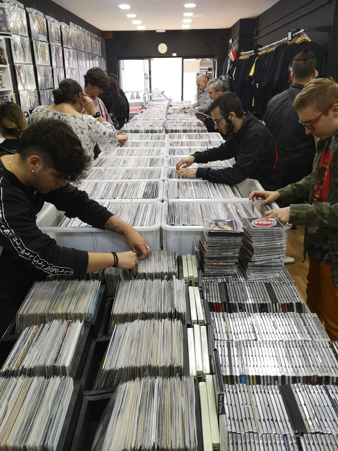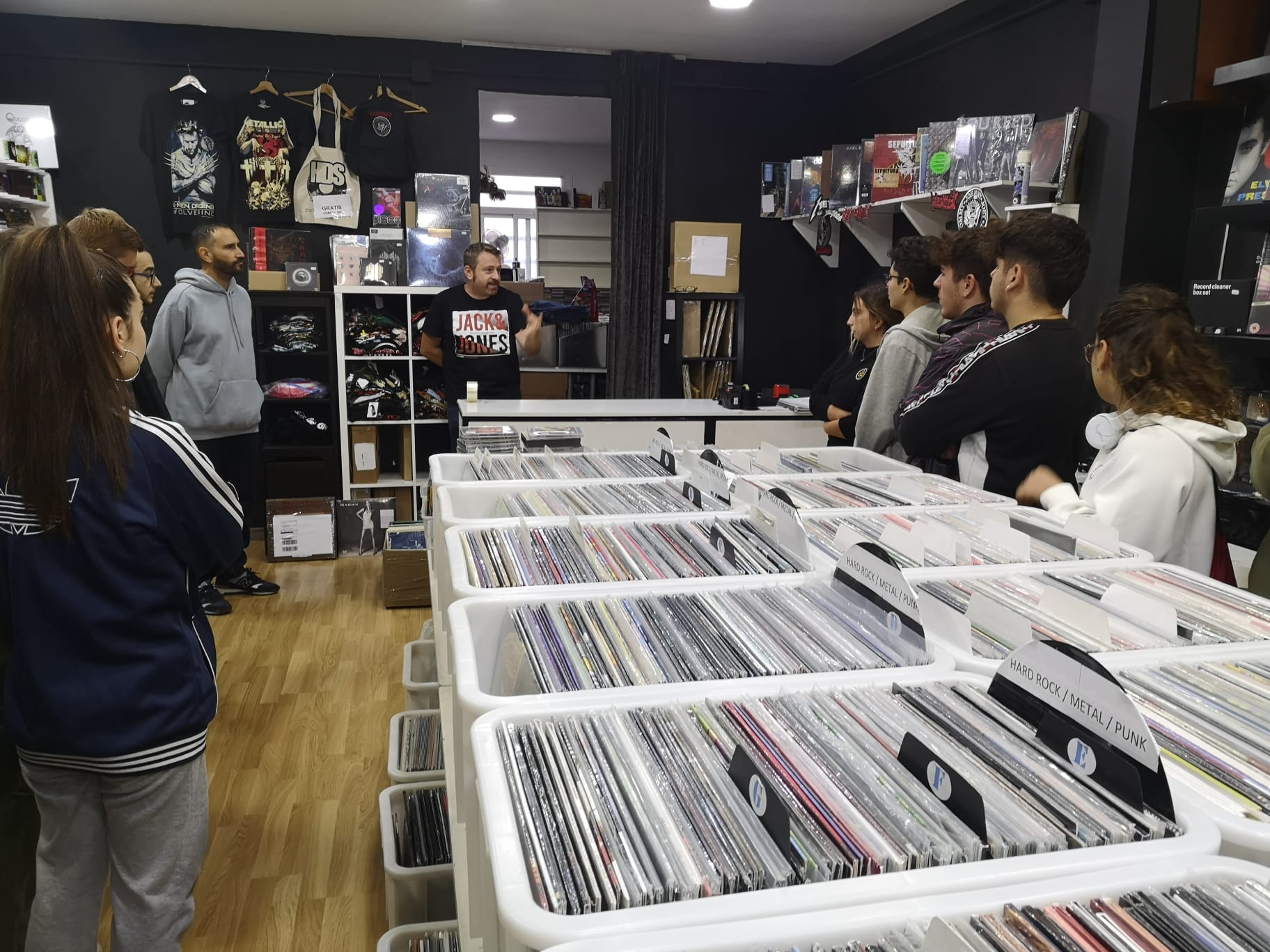 A @hdscollectors, tant el Jaume com el Pere, ens han explicat quants anys porten al negoci, quantes referències tenen en el seu catàleg, com classifiquen el material (estil,ordre alfabètic), percentatge de vendes, plataformes de venda (Discogs, Ebay). En acabar, l’alumnat ha pogut fer una ullada al material disponible a la tenda (vinils, cd, marxandatge).