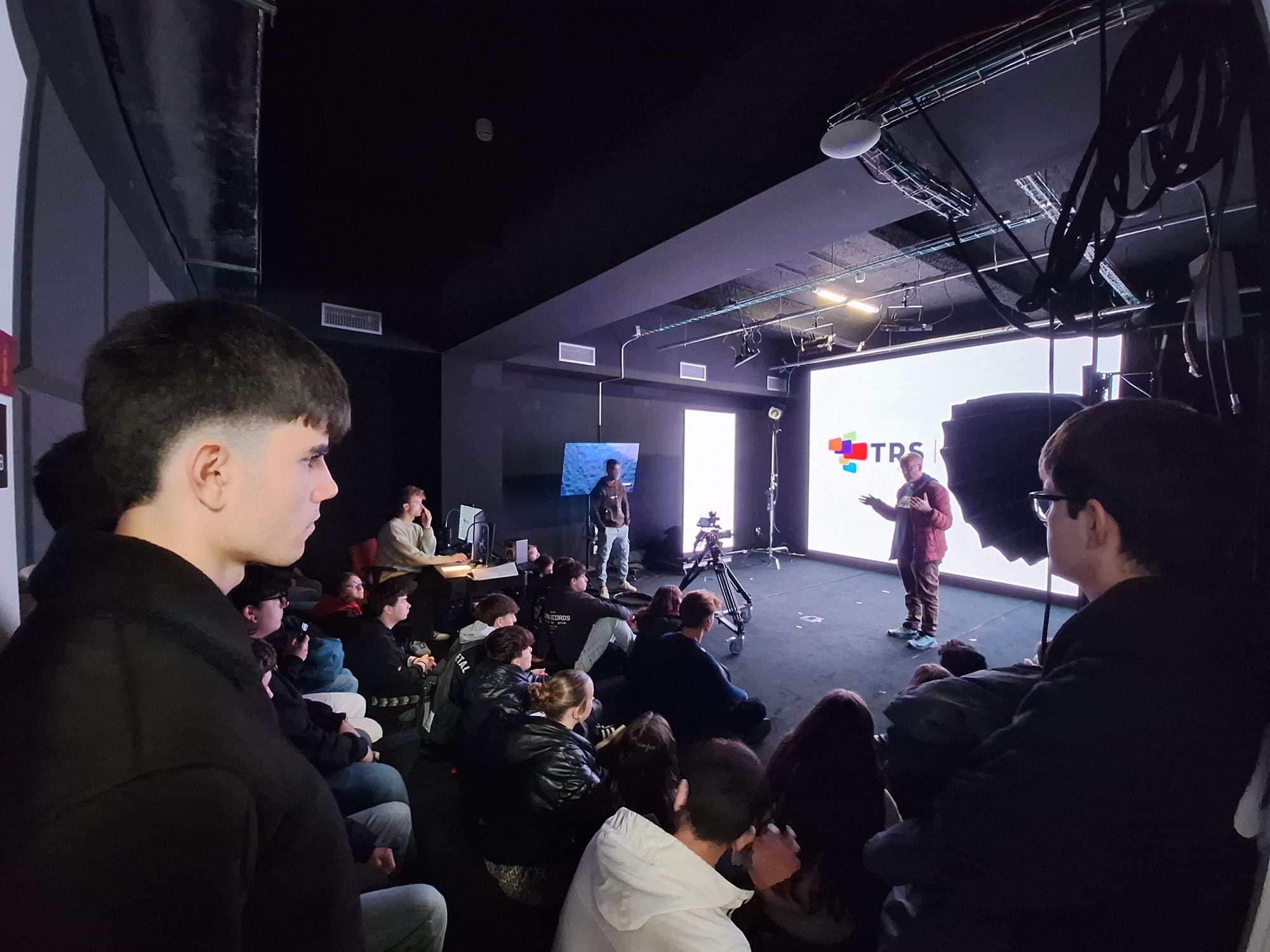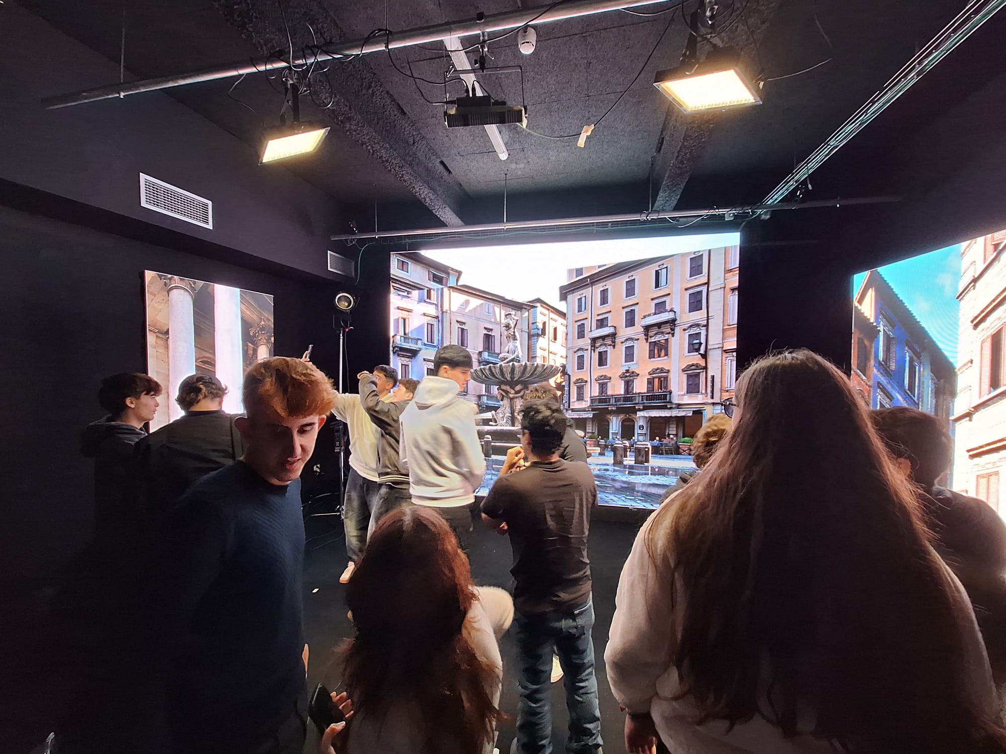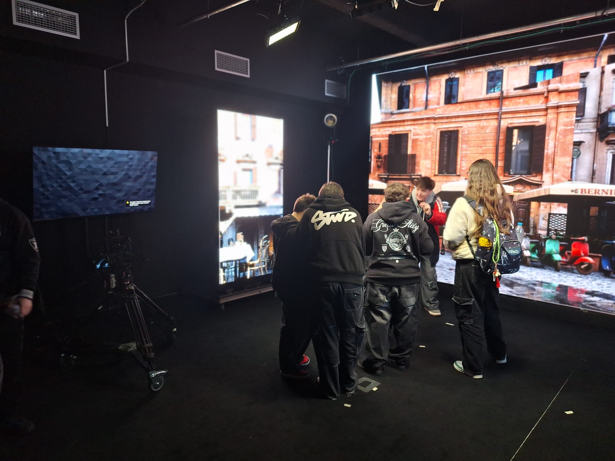 El grup del CFGM Videodisjòquei i so ha pogut visitar el parc Audiovisual de Catalunya i el Terrassa Film Lab, situat a l’antic Hospital del Tòrax. Aquest espai altament tecnològic es una instal·lació totalment equipada per realitzar producció virtual, una innovació audiovisual que últimament estem veient aplicada en grans produccions cinematogràfiques com “The Mandalorian”. La virtual production consisteix en la substitució d’escenografies i fons per imatges virtuals projectades en pantalles LED de grans dimensions.
