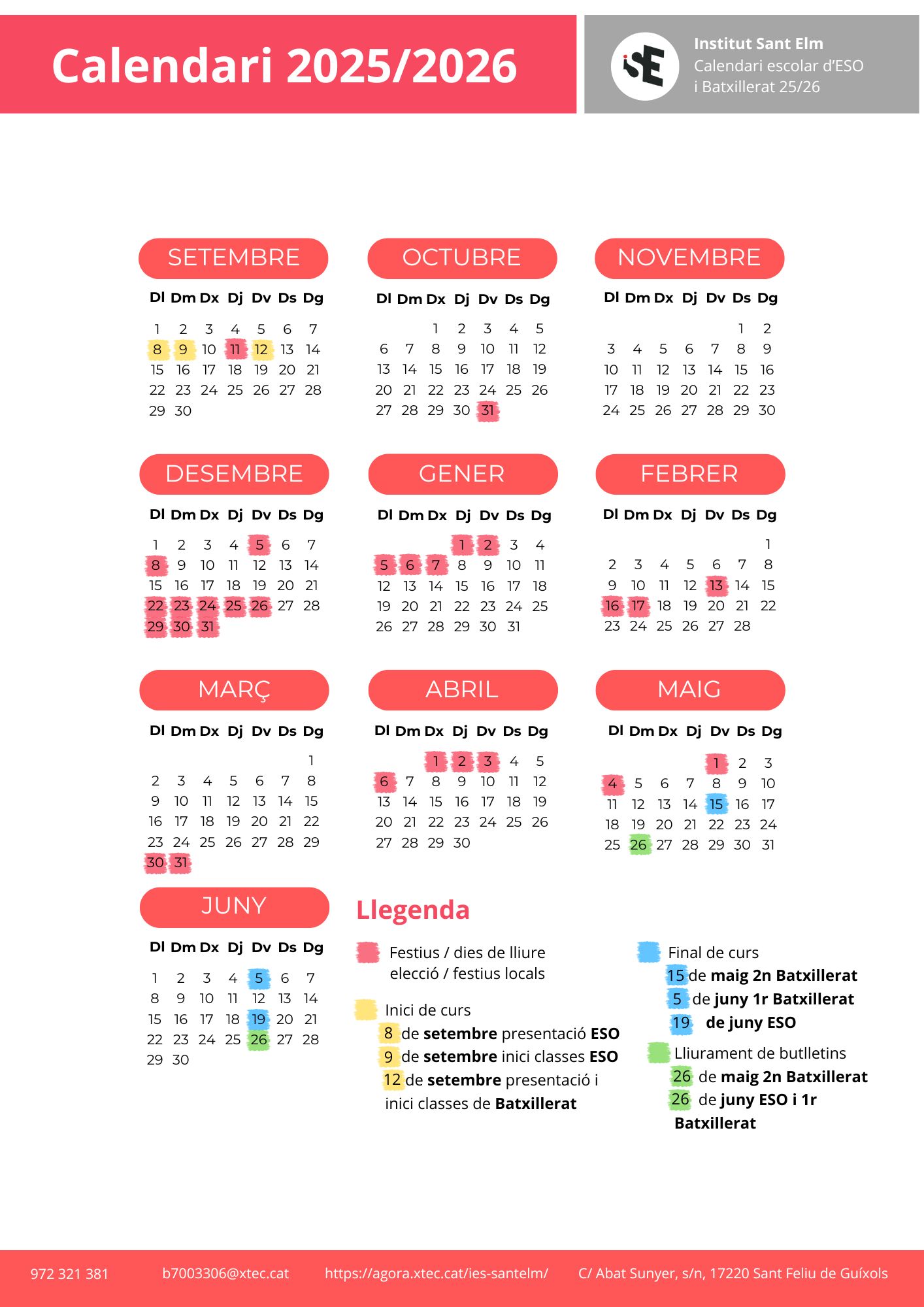 Portes Obertes i Xerrada Informativa (Curs 2026-2027) L’Institut Sant Elm obre les seves portes per donar a conèixer el nostre projecte educatiu i les nostres instal·lacions a les famílies i futurs alumnes que s’incorporaran el proper curs 2026-2027. Volem acompanyar-vos en aquest procés d’elecció de centre i resoldre tots els dubtes que pugueu tenir […]