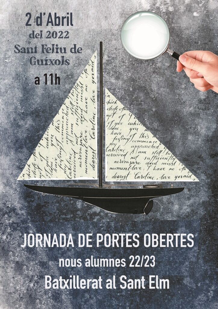 El dia 2 d’ abril d’11h a 13h celebrarem les jornades de portes obertes a l’institut Sant Elm adreçades a nous alumnes de batxillerat pel curs 22/23. Us hi esperem.
