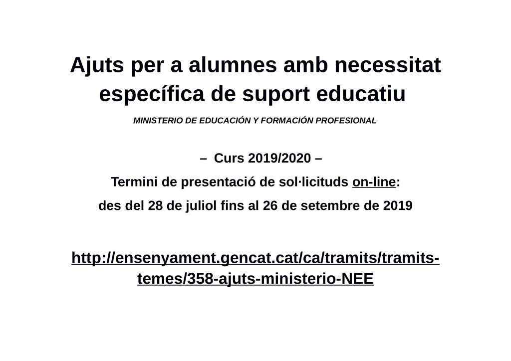 Ajut per alumnes amb necessitats específiques de suport educatiu Feu un comentari / Per admin / 16/09/2019 / ESO General Portada