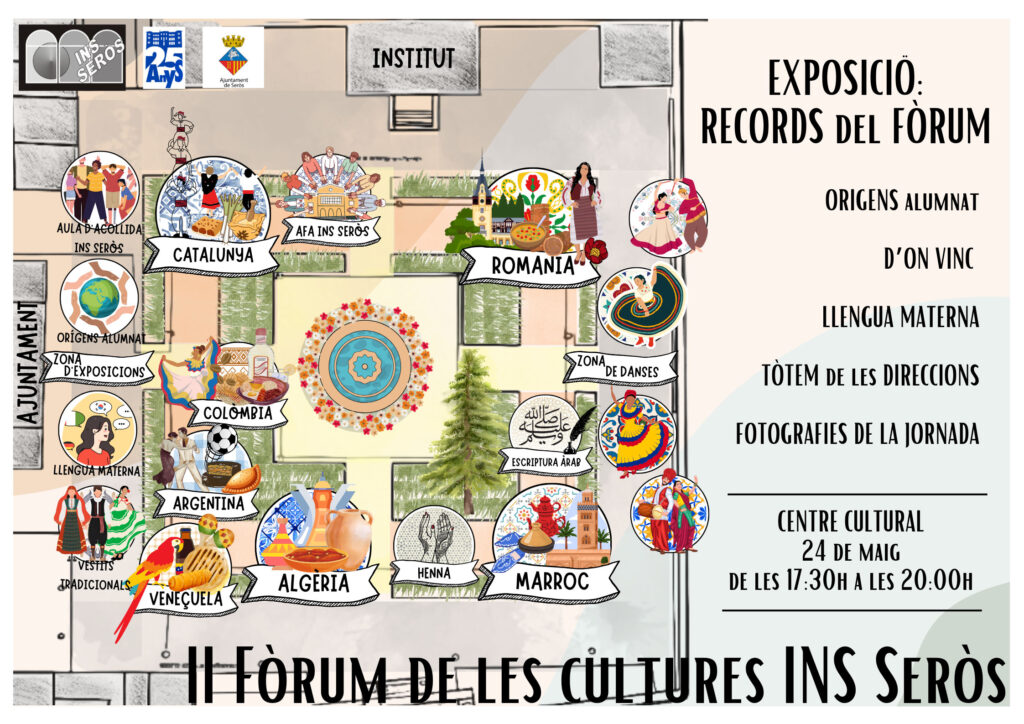 El passat 5 d’abril, a la plaça de les Escoles de Seròs, l’institut, juntament amb les famílies i els veïns, vam celebrar el II Fòrum de les Cultures. Va ser una jornada molt enriquidora que ens va permetre conèixer de primera mà la diversitat que ens envolta i ens enriqueix com a comunitat.