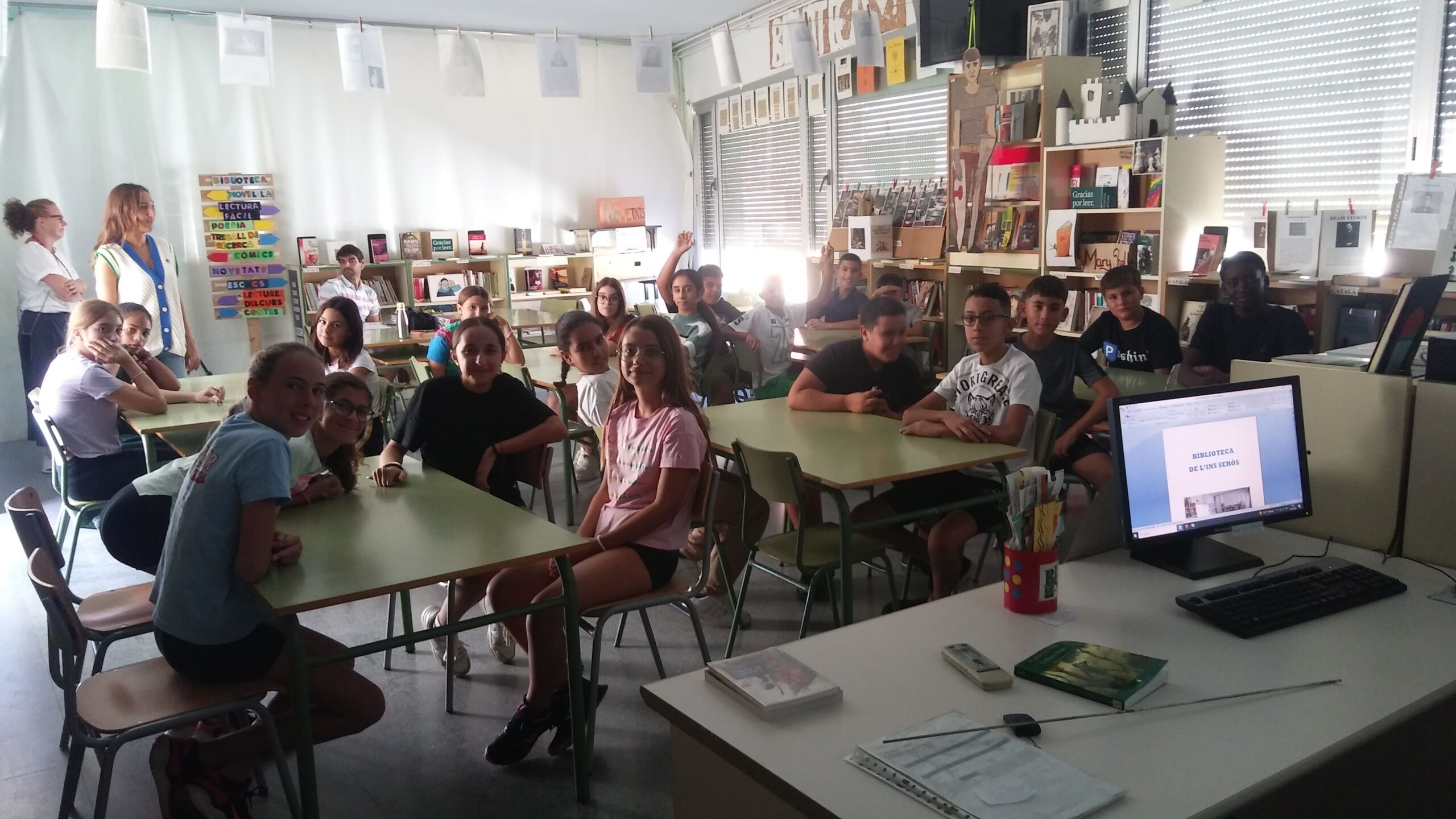 Tres grups d’alumnes de 1r d’ESO de recent incorporació han visitat el primer dia de curs la biblioteca del centre per a conèixer el seu funcionament i activitats que s’hi realitzen. La visita ha estat portada a terme en col·laboració amb la coordinadora de primer cicle, Cristina Reales i els tutors dels cursos respectius.