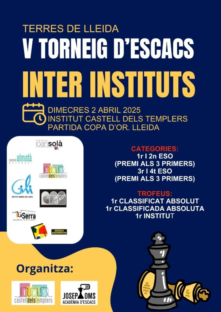 En aquesta edició del 2025 ha estat organitzat per l’Ins Castell dels Templers, en la Partida Copa d’Or, al camí vell d’Albatàrrec. En Josep Maria Corretger va encetar la iniciativa d’introduir els escacs al centre per tal de millorar l’alumnat el setembre del 2019 i demanar ajuda per aconseguir material per a iniciar-ho, arriscar-se a fundar l’equip l’octubre del 2021 i proposar-los la participació en alguns tornejos en línia o presencials, va crear el Biblioescacs: joc dels escacs als patis de biblioteca, engegar un torneig i acordar crear la matèria optativa d’escacs a 1r i 2n d’ESO amb l’equip directiu, per tal d’ensenyar el joc i les seves regles des de zero.