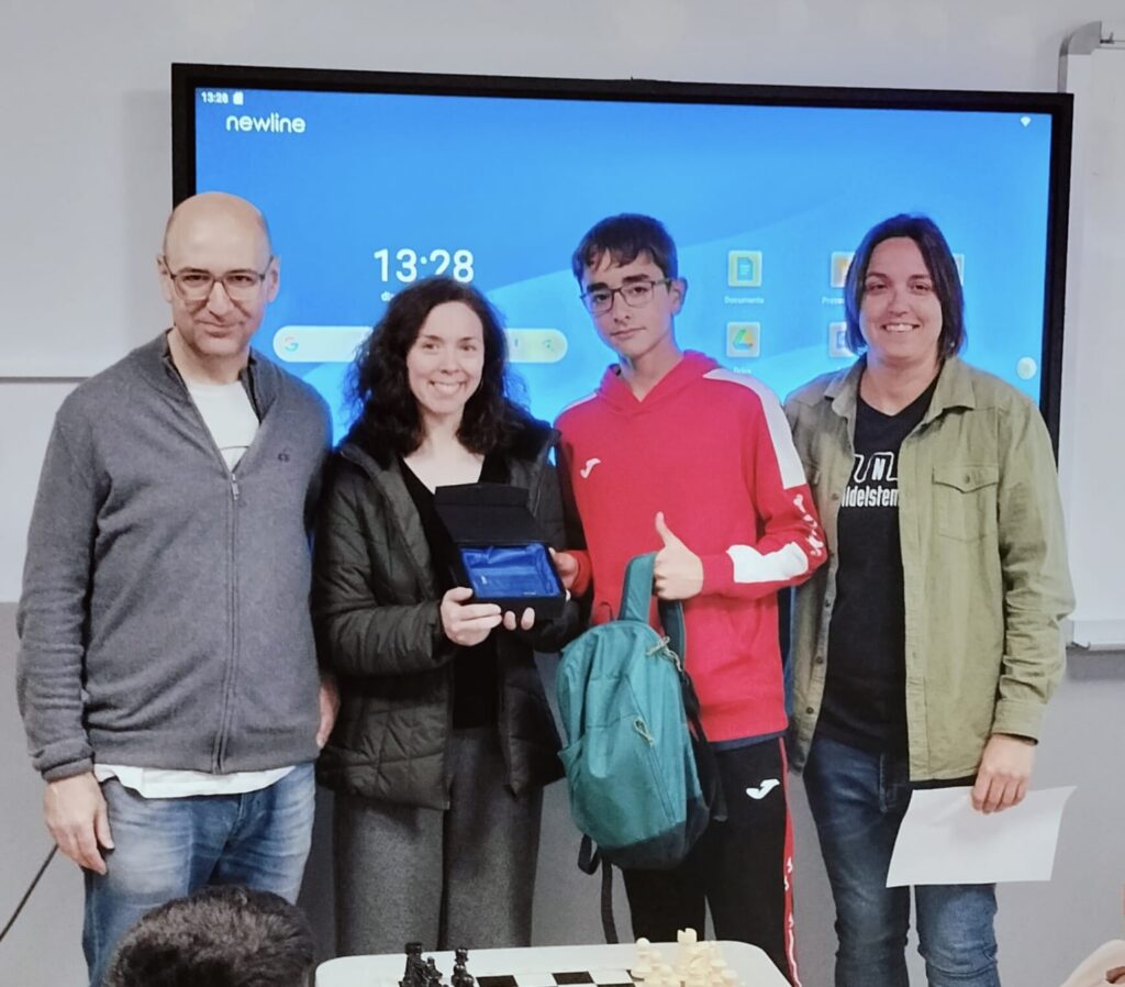 El nostre equip va començar amb 10 jugadors/es el 2023, 20 el 2024 i 27 el 2025, per tant, hem tingut un repte. Ha costat força organitzar l’equip: cercar possibles jugadors/es, cobrir les baixes, recollir les autoritzacions, recordar que calia fer un pagament, estar atent als imprevistos, fer extensiva la normativa del torneig, resoldre dubtes… emperò, la tasca ha estat satisfactòria, un orgull poder contribuir en aquesta brillant iniciativa a nivell de Secundària juntament amb 170 alumnes. El professorat acompanyat: Jaume Porta, Mireia Vergé (TIS), Josep Maria Corretger (coordinador). S’ha gaudit del torneig, de fantàstiques partides, s’ha guanyat, s’ha perdut, s’ha empatat, t’han és, al final, l’important ha estat esforçar-se i estar-hi, viure l’experiència d’estar en aquest torneig, el respecte, facilitar la feina als organitzadors. Al nostre equip hem tingut quatre jugadores: Noha, Blau, Andrea, Paula, i esperem créixer amb més noies que els encantin els escacs! Hem rebut un premi una vegada més, perquè el tercer millor jugador en la categoria de 1r i 2n d’ESO ha estat el Biel Collado. Recordar que el 2024 la Sabrine Rhiate va ésser la millor jugadora; i el 2025 ho fou ella compartit amb la Làmia Aoulad; i entre els tres primers classificats absoluts hi havia el Jordi Baranda, amb tan sols una derrota. Així com també hem tingut d’altres jugadors ben posicionats, per exemple, el Leo Cintas, quart del torneig absolut i empatat amb el tercer, tanmateix amb pitjor coeficient de peces; o d’altres amb més de sis punts: Mahfoud Boudiaf, Joel Pérez, Jordi Baranda; o bé amb cinc o més: Noha Ghazaoui, Pol López, Oriol Royo, Raül Llinàs, Aiman Gaddour, Martí Aresté, Denis Illa, Hugo Cintas, Pol Galindo, Daniel Huérfano. Enhorabona a tothom! Som un equip! Moltes gràcies a tothom que ho ha fet possible una vegada més!