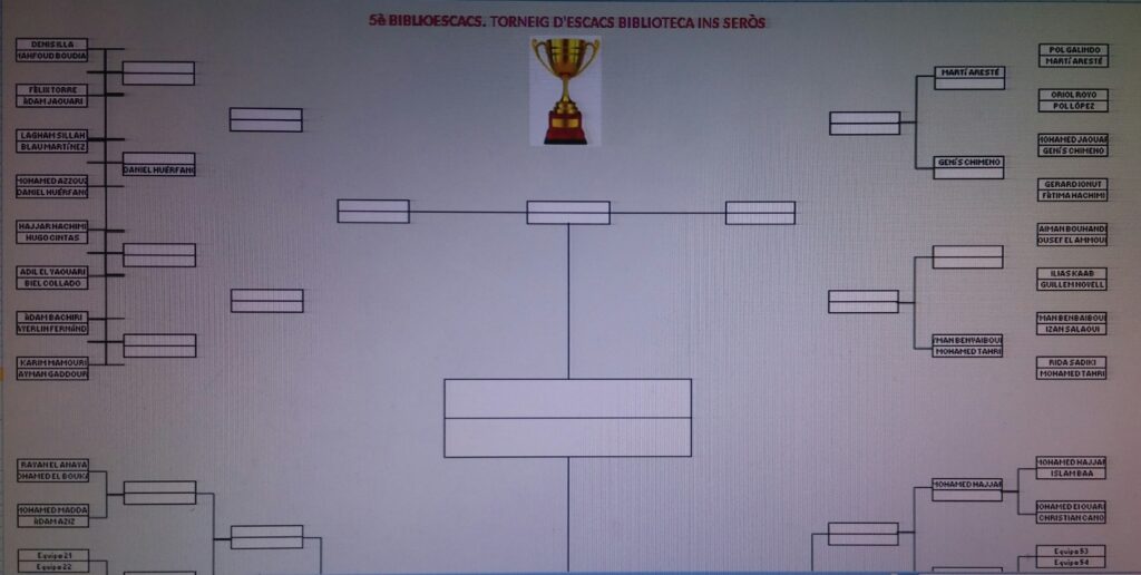Aportem els emparellaments tal i com han sortit avui al primer pati de biblioteca amb diferents alumnes col·laborant en extraure els paperets amb els noms.