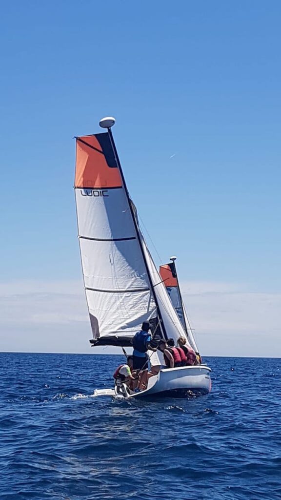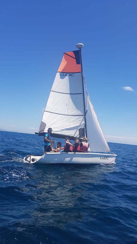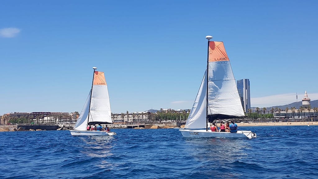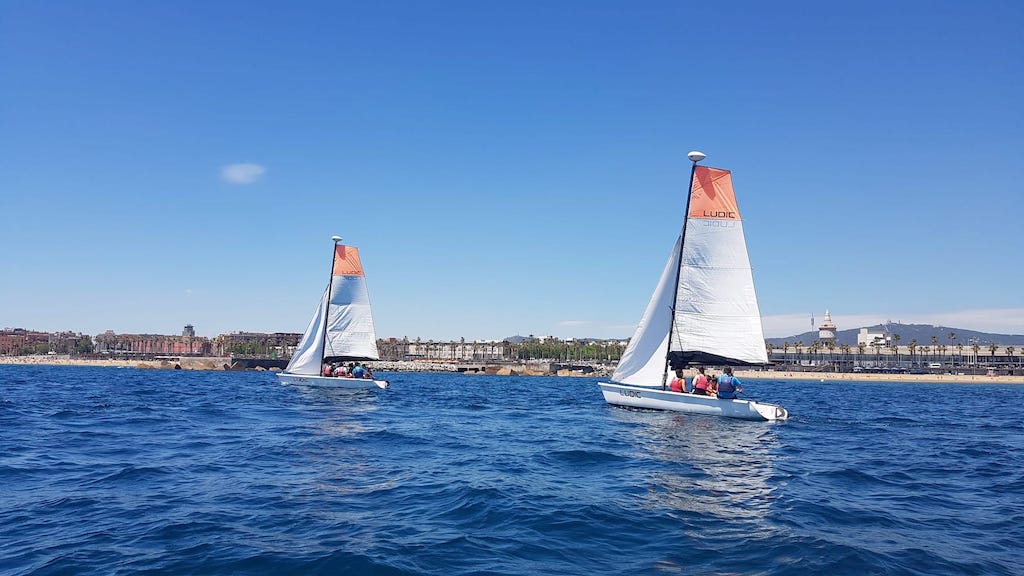 Durant dues hores han fet de pilot, de patró, de grumet…. amb la intenció de governar un vaixell d’uns 5 m d’eslora per la costa de Barcelona. El dia ha estat esplèndid amb sol i una lleugera brisa que han fet l’activitat més entretinguda que no pas en un dia de plena calma. Qui ho havia de dir després de les pluges de dimarts i dimecres!