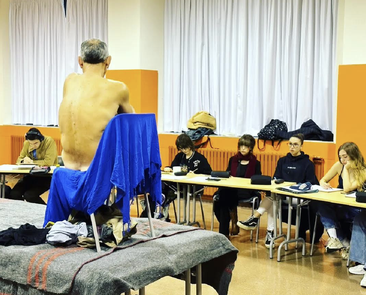 Amb aquesta activitat, s’aprèn a dibuixar i entendre el cos humà a partir del dibuix d’un model nu. Es combinen poses ràpides per aprendre a fer apunts i poses llargues que permeten treballar millor el dibuix.
