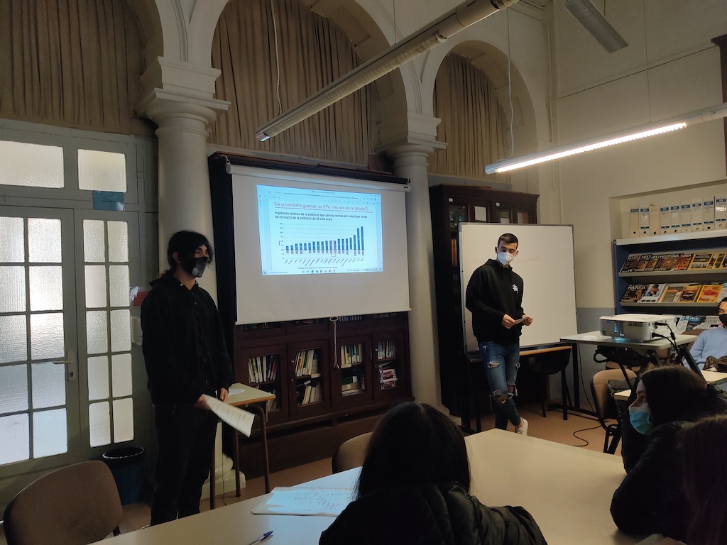 La sessió es va desenvolupar en dues parts: la primera, amb les intervencions i valoracions dels alumnes de 2n de Batxillerat, on els explicaren la seva experiència acadèmica, i la segona, vam visitar les instal·lacions del centre i les aules de referència del Batxillerat.