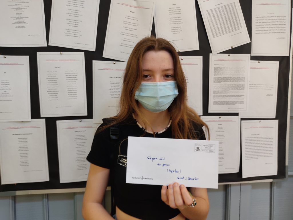 L’Àlex Roig, alumna de 2n de Batxillerat Humanístic, ha estat guardonada amb el 2n premi de Narrativa dels Jocs Florals del districte de Gràcia en el seu relat, Carrers foscos.