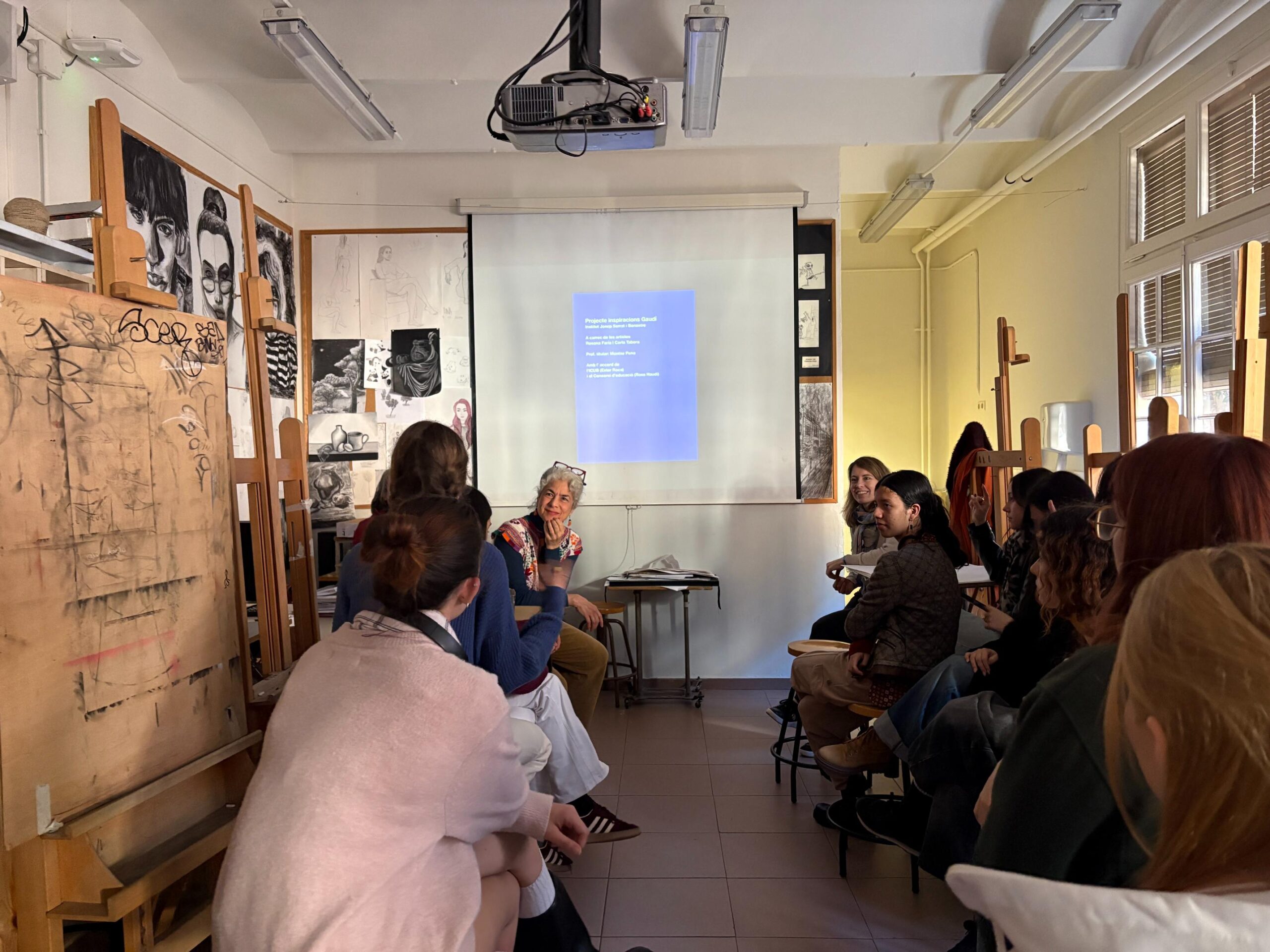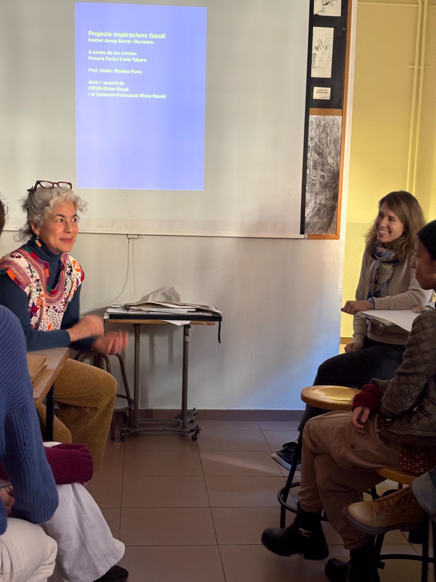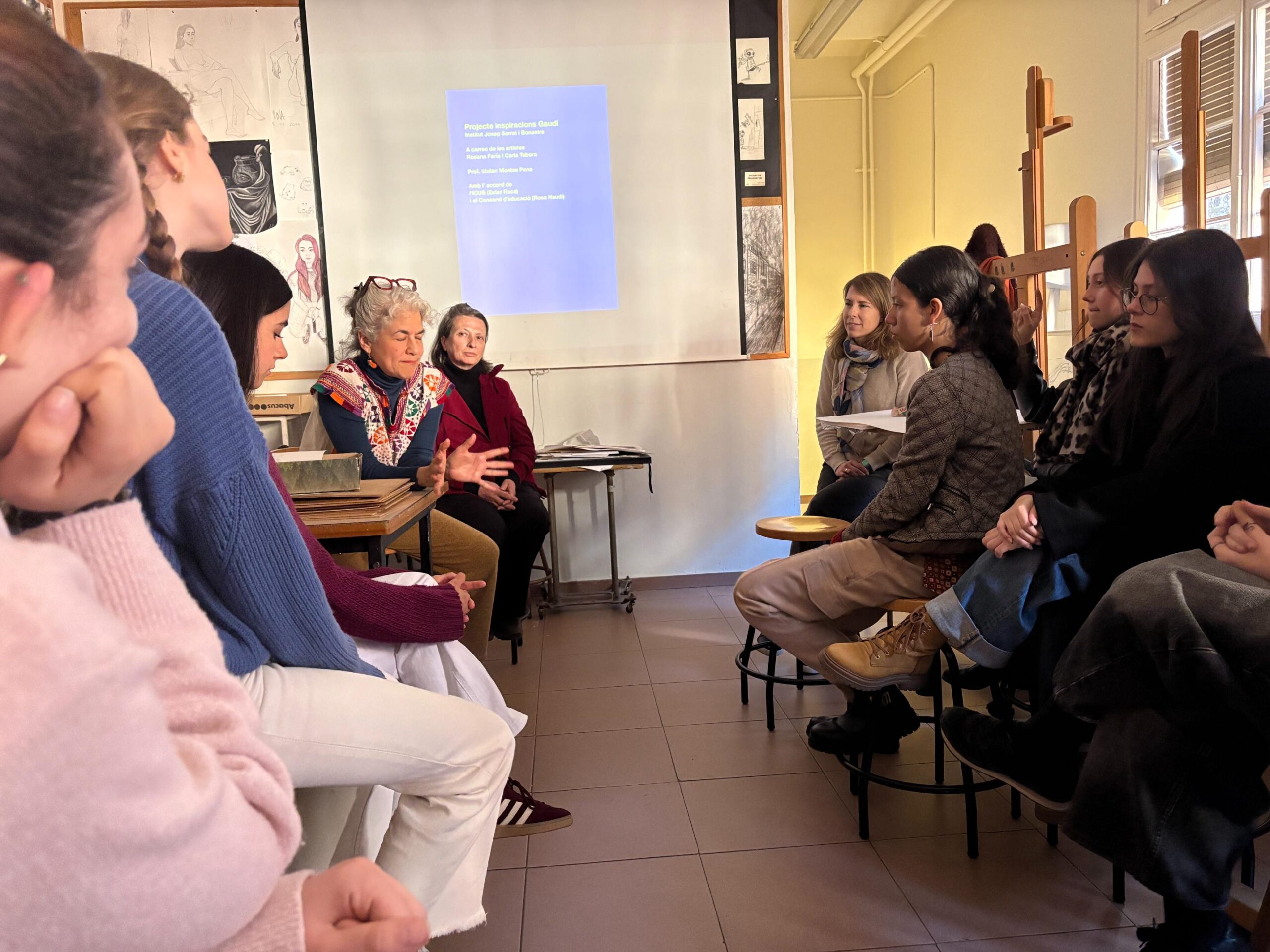 Alumnes, artistes, docent i directora han pogut fer un feed-back d’aquesta experiència. Les artistes Rosana Faria i Carla Tabora han resaltat la implicació del grup/classe durant tot el procés i en cada jornada de treball i han pogut aportar una breu valoració personal a cada alumna. Comentaris engrescadors i a considerar en les seves produccions personals. Per la seva part, l’alumnat ha compartit que aquest taller els ha obert un món cap a la diversitat de tècniques i d’autoconeixement artístic. Des de la docència s’ha destacat com aquest espai creatiu ha permès copsar, des d’un context més lliure, com cada alumna anava temptant el seu propi estil i l’abocava sobre la seva producció. Agraïm a l’ICUB aquesta oportunitat de delectança a 3 bandes.
