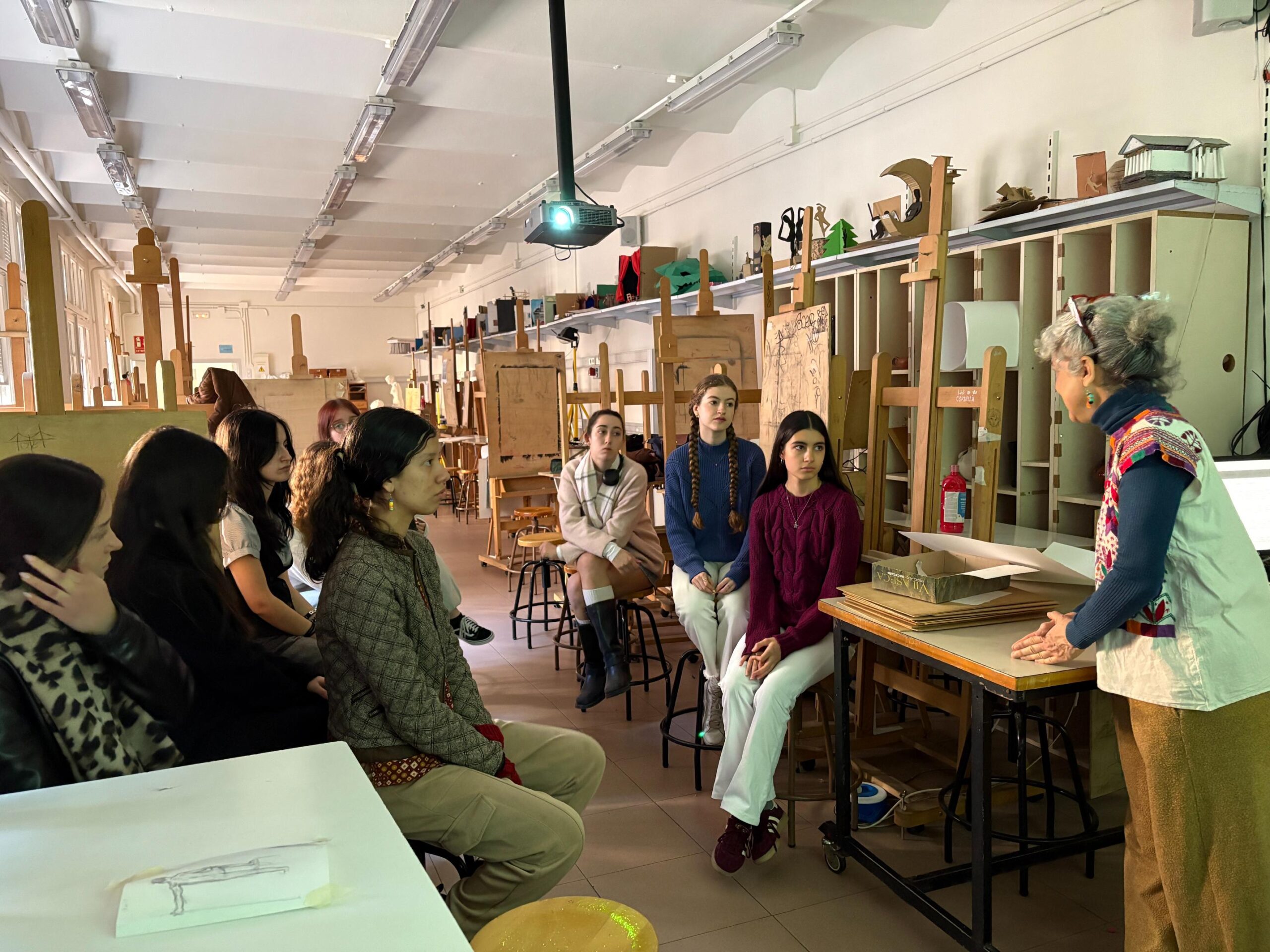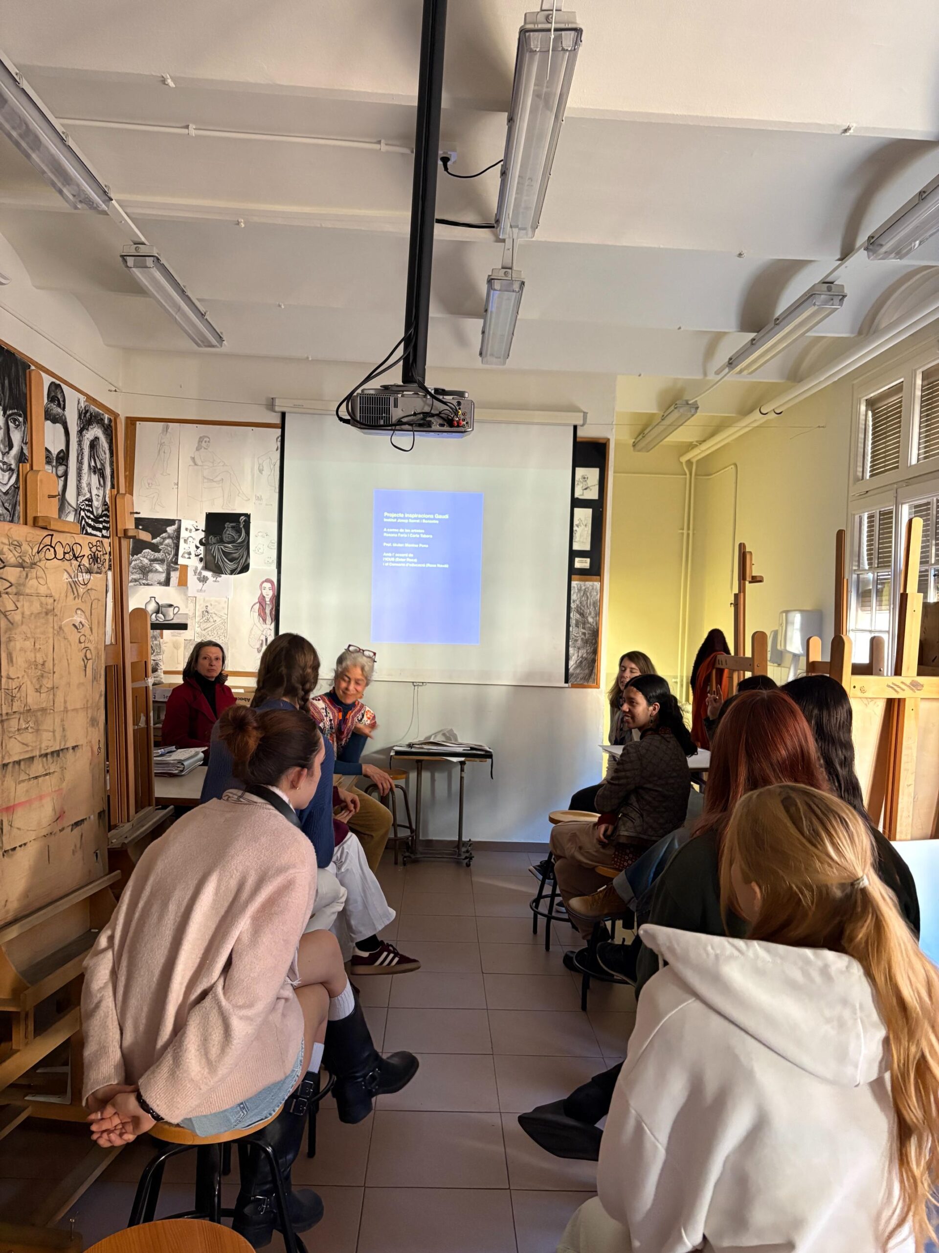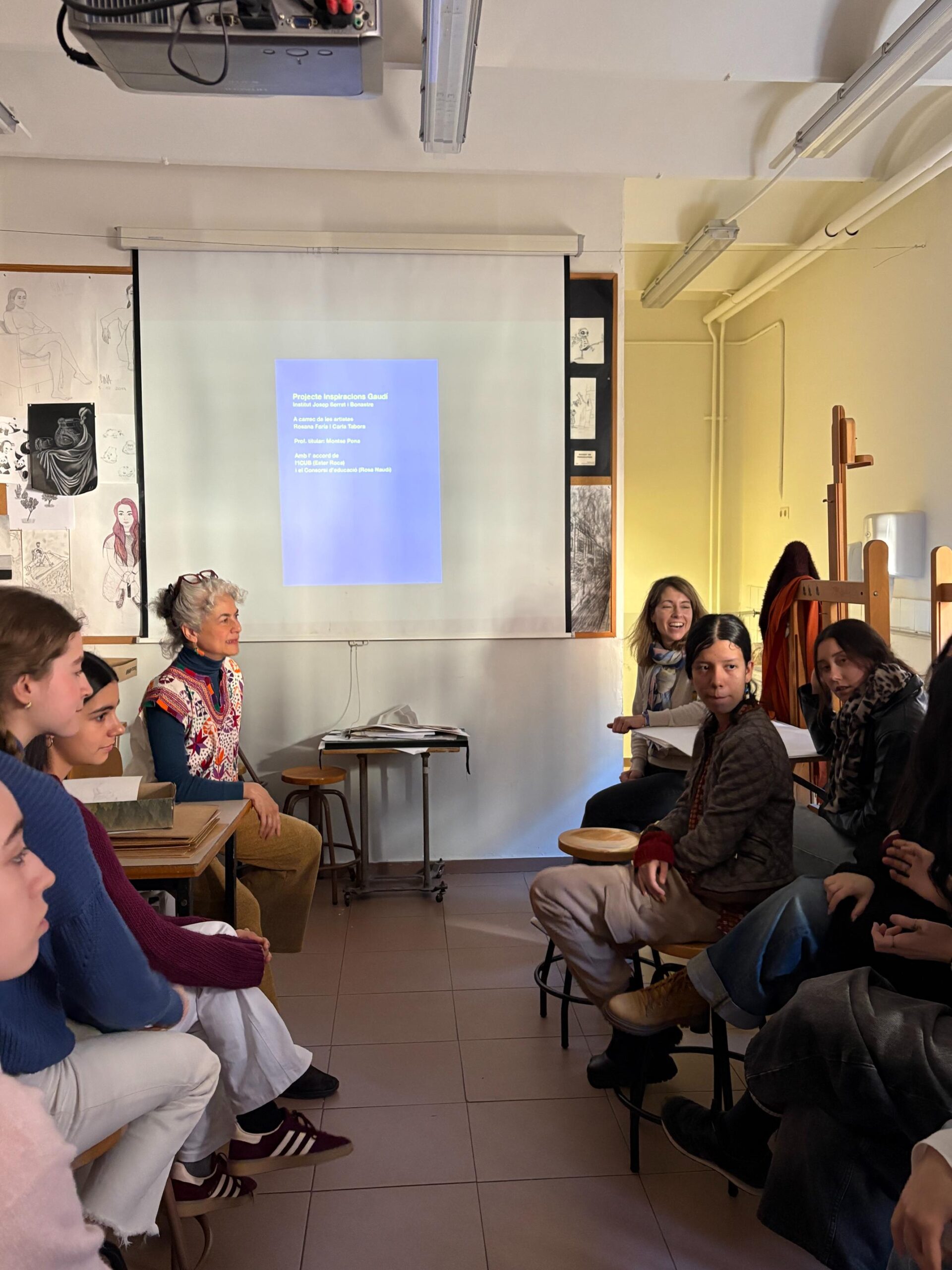 Alumnes, artistes, docent i directora han pogut fer un feed-back d’aquesta experiència. Les artistes Rosana Faria i Carla Tabora han resaltat la implicació del grup/classe durant tot el procés i en cada jornada de treball i han pogut aportar una breu valoració personal a cada alumna. Comentaris engrescadors i a considerar en les seves produccions personals. Per la seva part, l’alumnat ha compartit que aquest taller els ha obert un món cap a la diversitat de tècniques i d’autoconeixement artístic. Des de la docència s’ha destacat com aquest espai creatiu ha permès copsar, des d’un context més lliure, com cada alumna anava temptant el seu propi estil i l’abocava sobre la seva producció. Agraïm a l’ICUB aquesta oportunitat de delectança a 3 bandes.