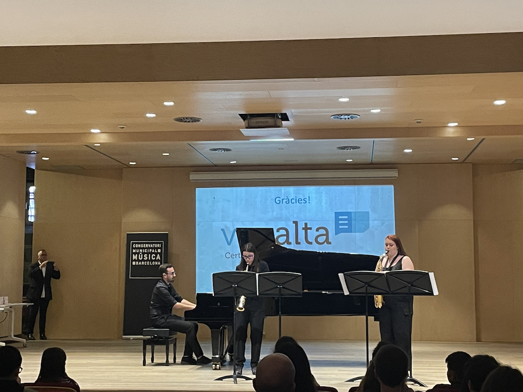 El dia 15 de març tres alumnes de 3r d’ESO i una alumna de 1r d’ESO de l’aula d’acollida han participat en el Certamen de Lectura en Veu Alta, celebrat al Conservatori Municipal de Música de Barcelona. Veualta és un projecte del Grup Enciclopèdia que té la missió de promoure la literatura i la llengua per mitjà de la lectura compartida en veu alta. Els participants, que van ser seleccionats per la seva gran habilitat de lectura en veu alta, no han quedat finalment classificats, però han estat obsequiats per la seva dedicació i esforç amb un diploma i un llibre.