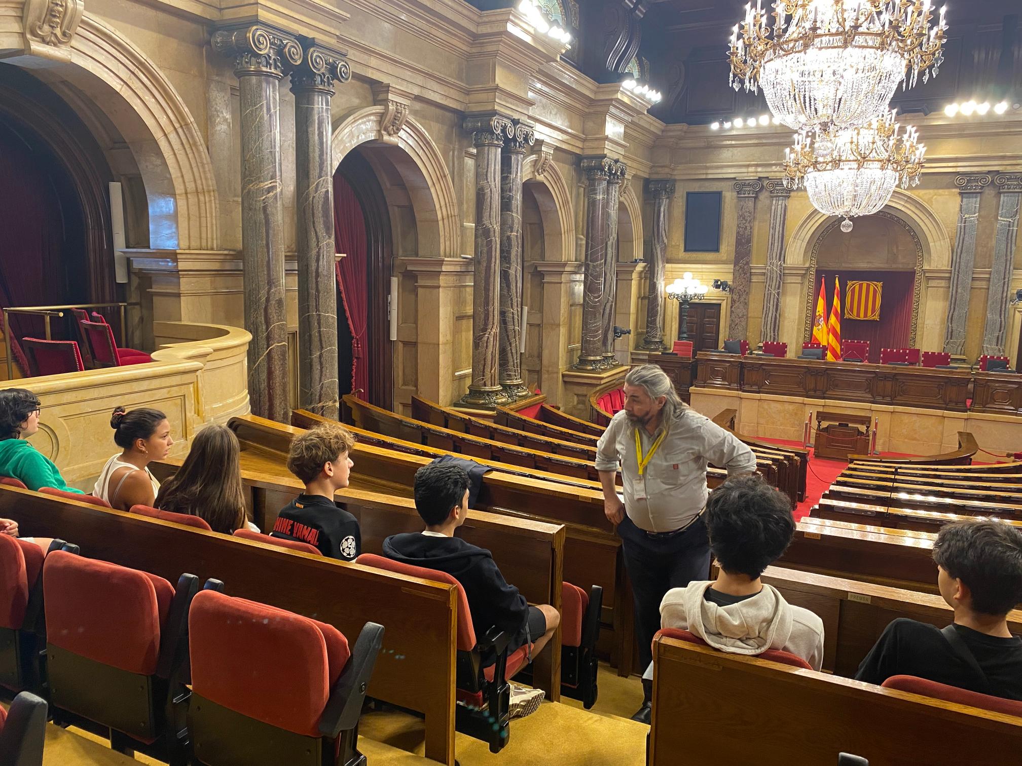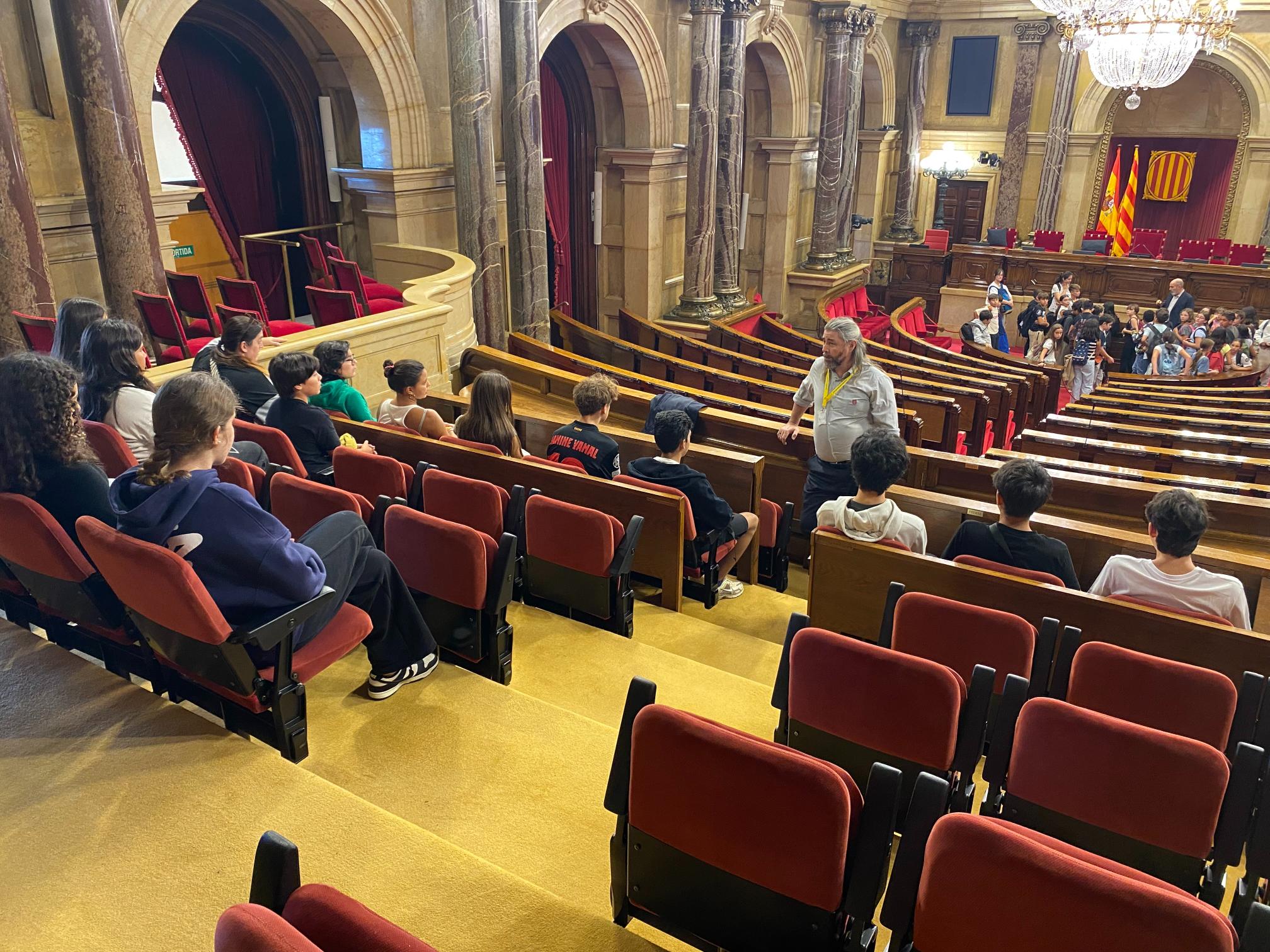 Dins de l’hemicicle del Parlament van rebre una detallada explicació de la funció i l’organització de la institució parlamentària. Durant la visita els guies els van explicar els orígens històrics de l’edifici i la seva evolució des de principi del segle XVIII fins a l’actualitat.