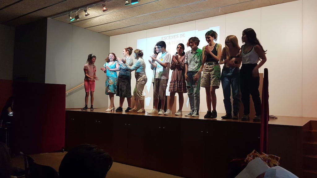 El passat divendres 10 de juny els alumnes d’ARTS ESCÈNIQUES de 4t ESO van presentar el taller de teatre final: ALGUNES ESCENES DE CRIATURES, de T DE TEATRE, davant d’un públic entregadíssim, els alumnes de 3r i 4t ESO del centre.