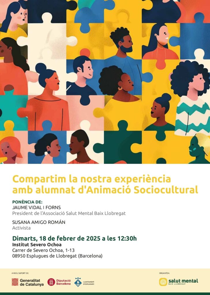 El passat 18 de febrer l’alumnat de 1r d’Animació Sociocultural va gaudir d’una xerrada distesa amb Salut Mental Baix Llobregat. En aquesta xerrada vam escoltar experiències en primera persona, tant d’una persona amb bipolaritat com de la seva mare, ajudant-nos a entendre algunes de les dificultats i experiències d’una manera més transversal.