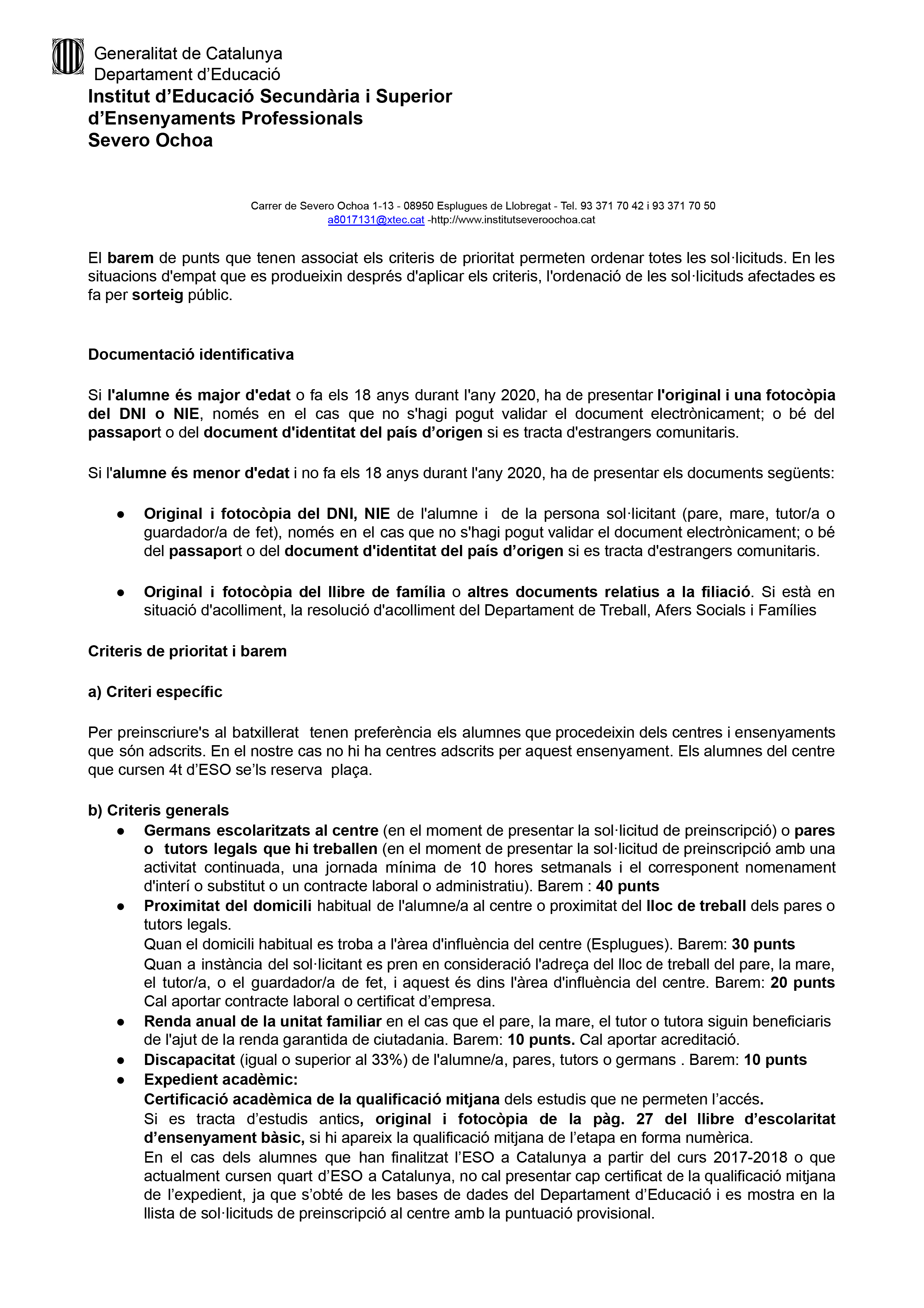 Preinscripció BATX 2020-2021-2