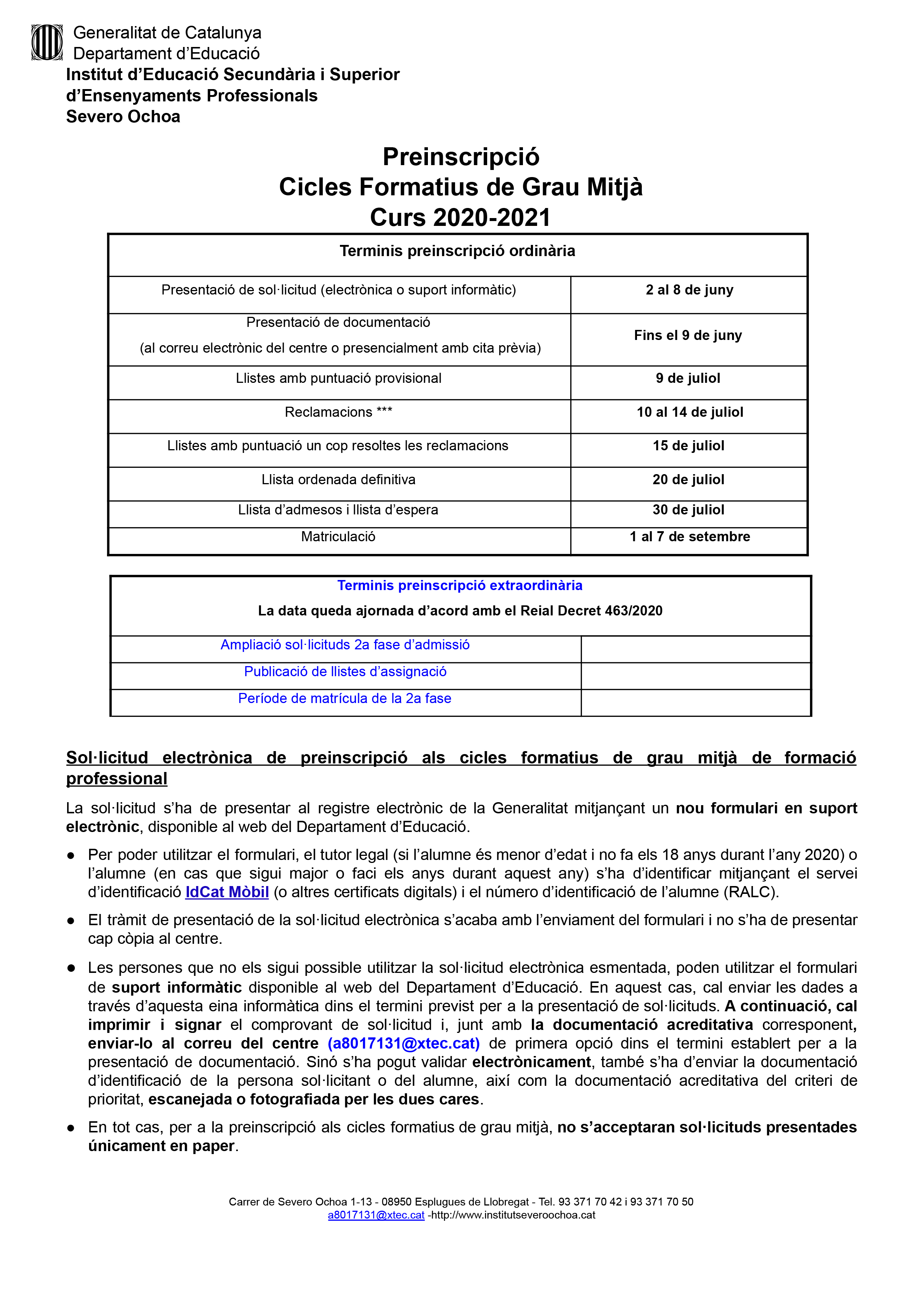 Preinscripció CICLES GRAU MITJÀ 20-21-1